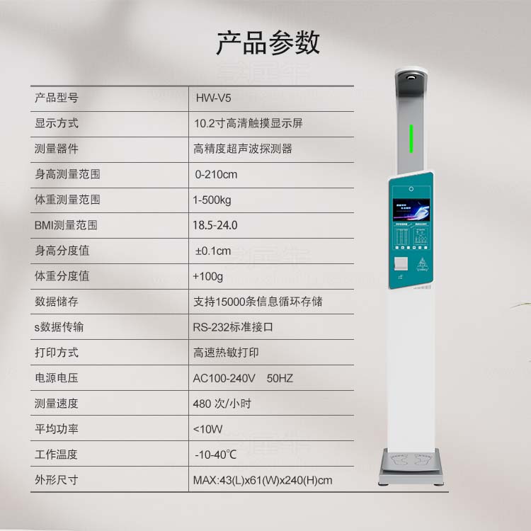 乐佳利康HW-V5智能超声波体重秤 全自动测量身高体重的仪器是一款集高精度、智能化与人性化设计于一体的身高体重测量仪器,以下是对该产品的详细介绍: