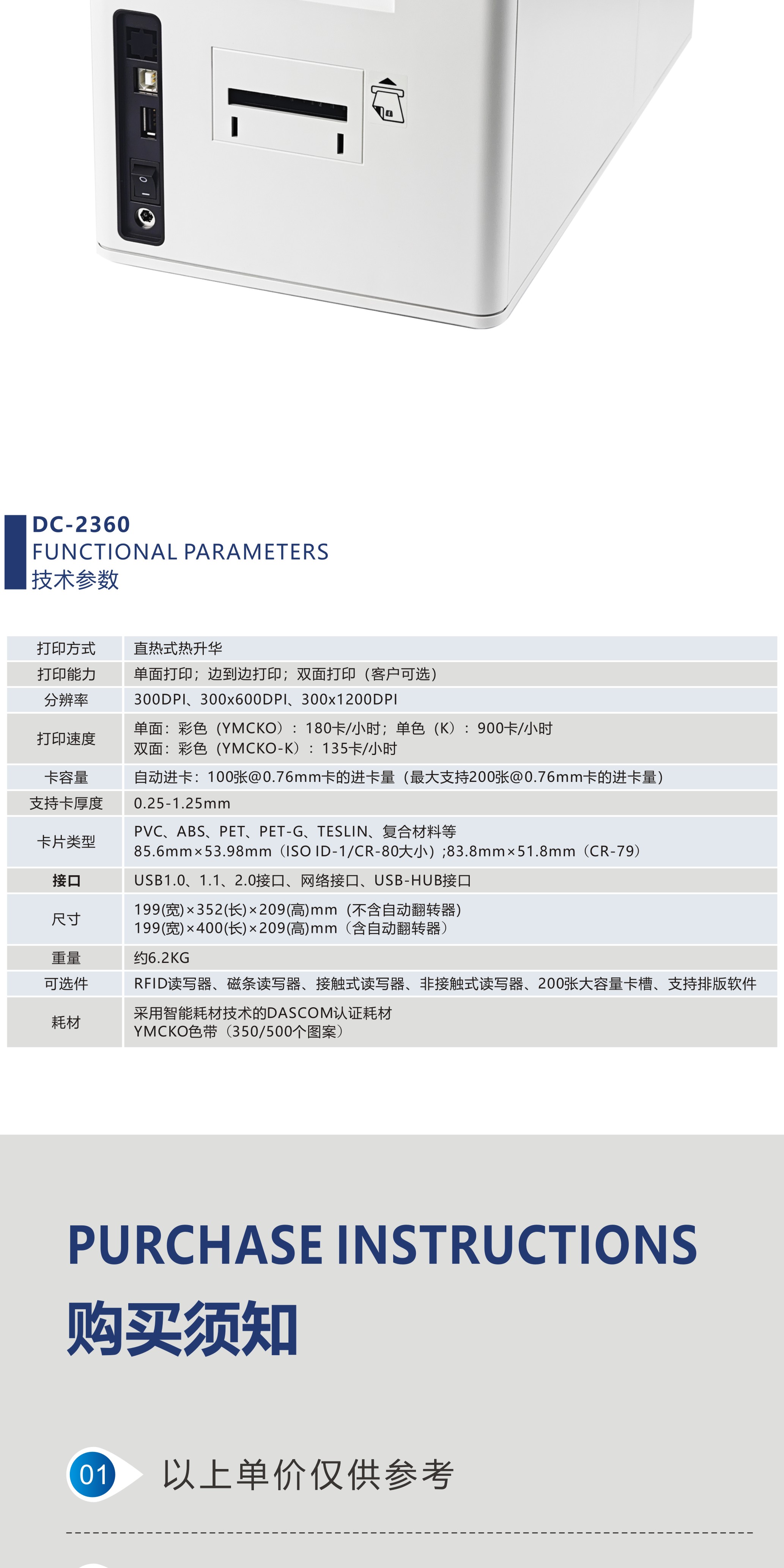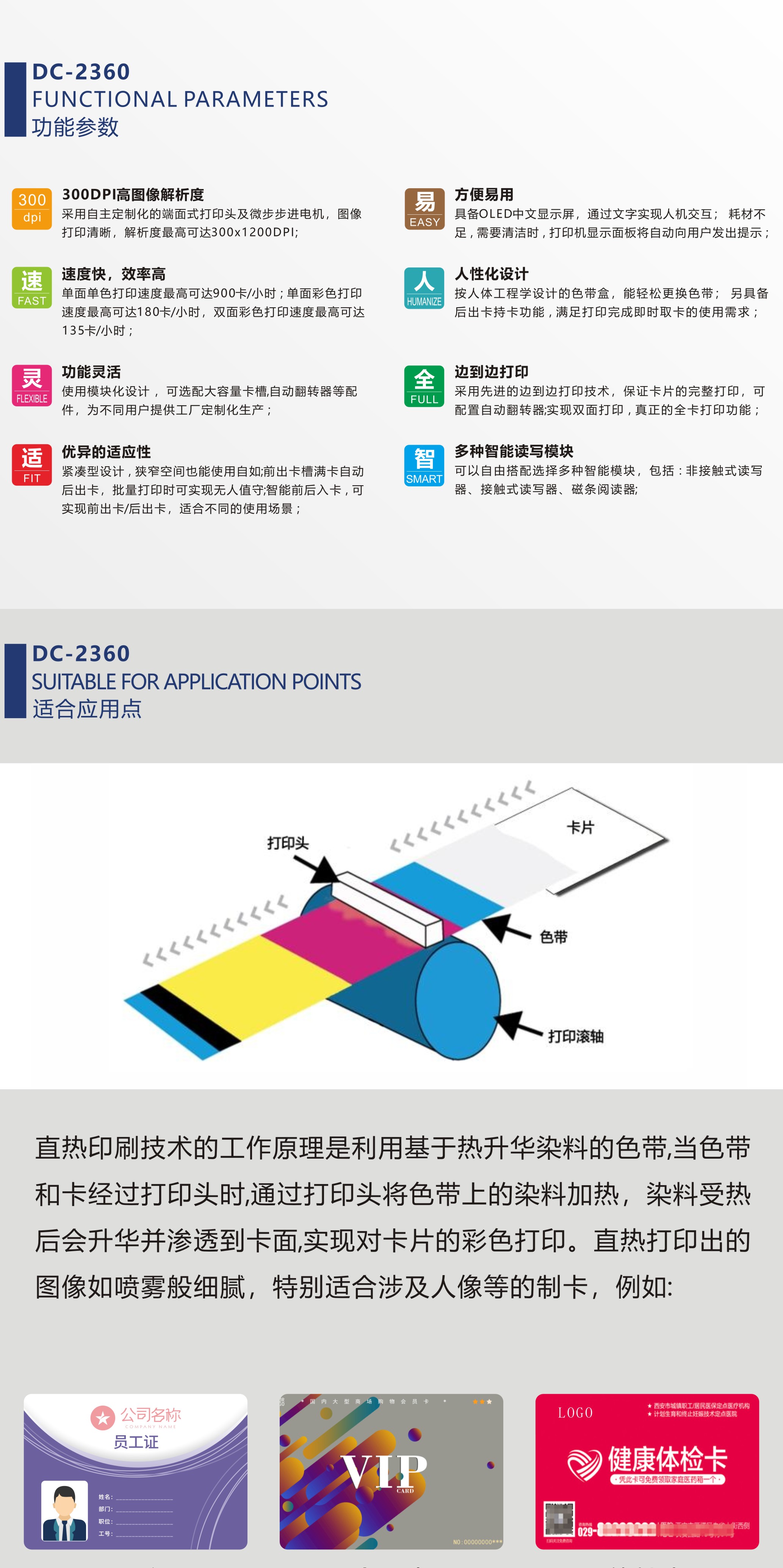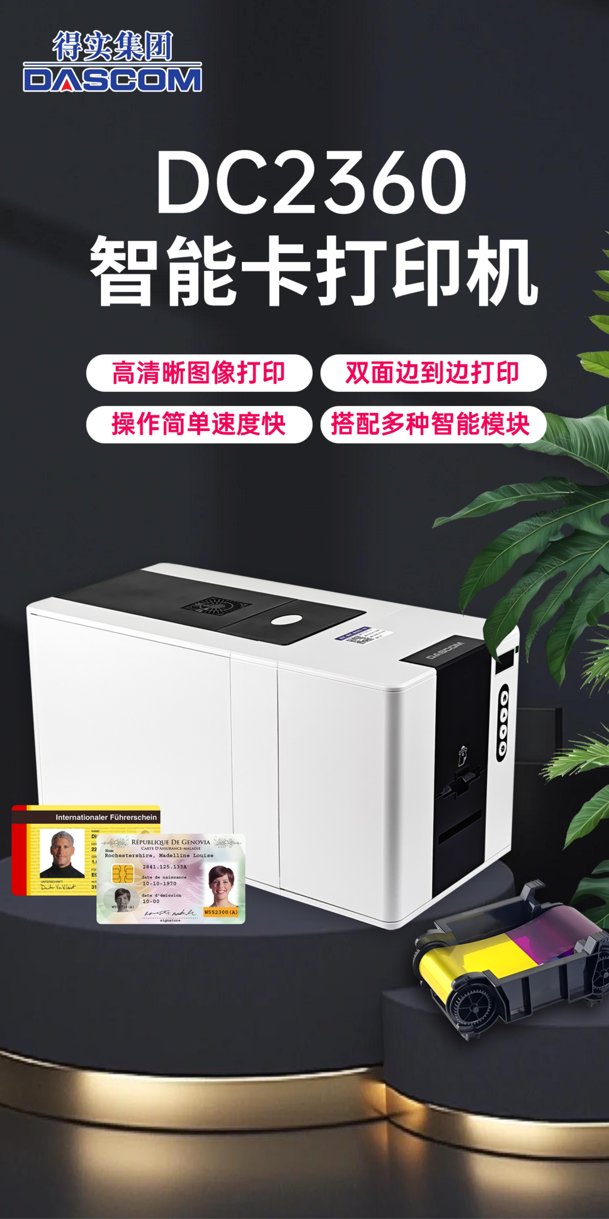 得实证卡打印机DC-2360 300DPI彩色直热紧凑型智能卡