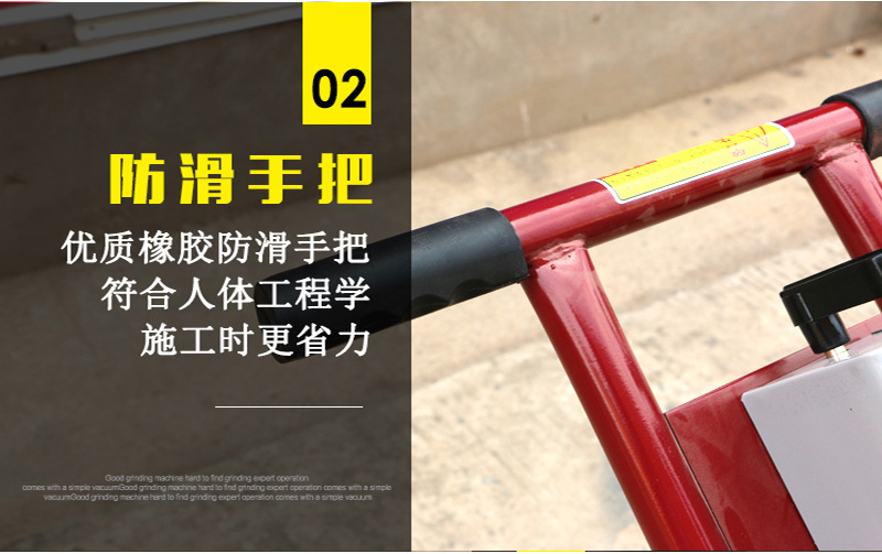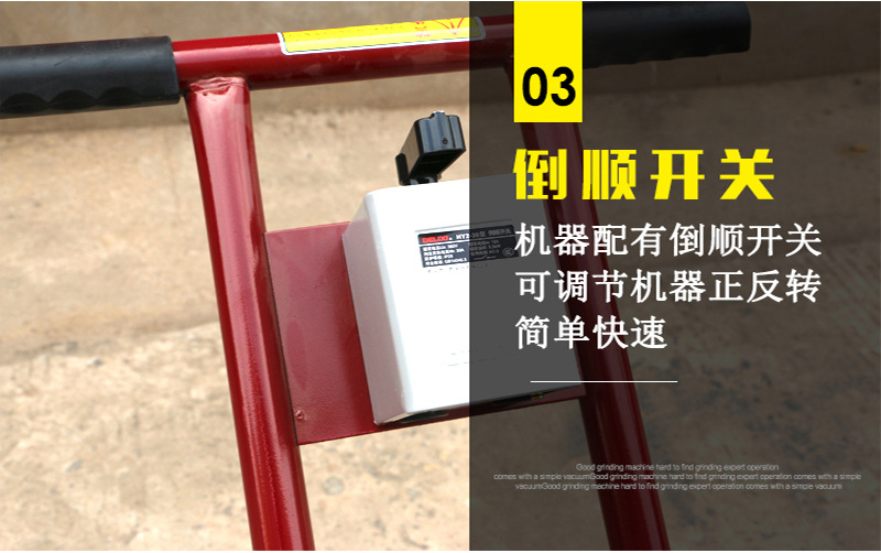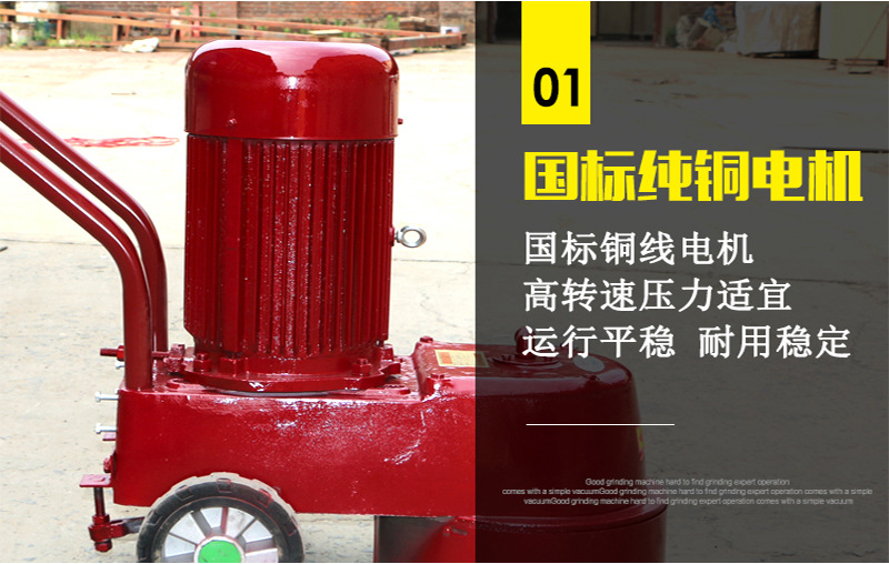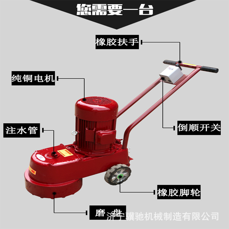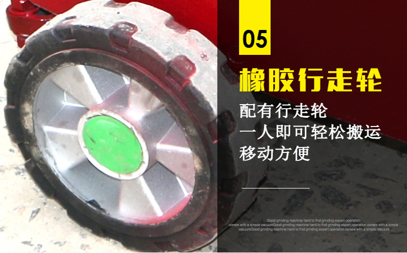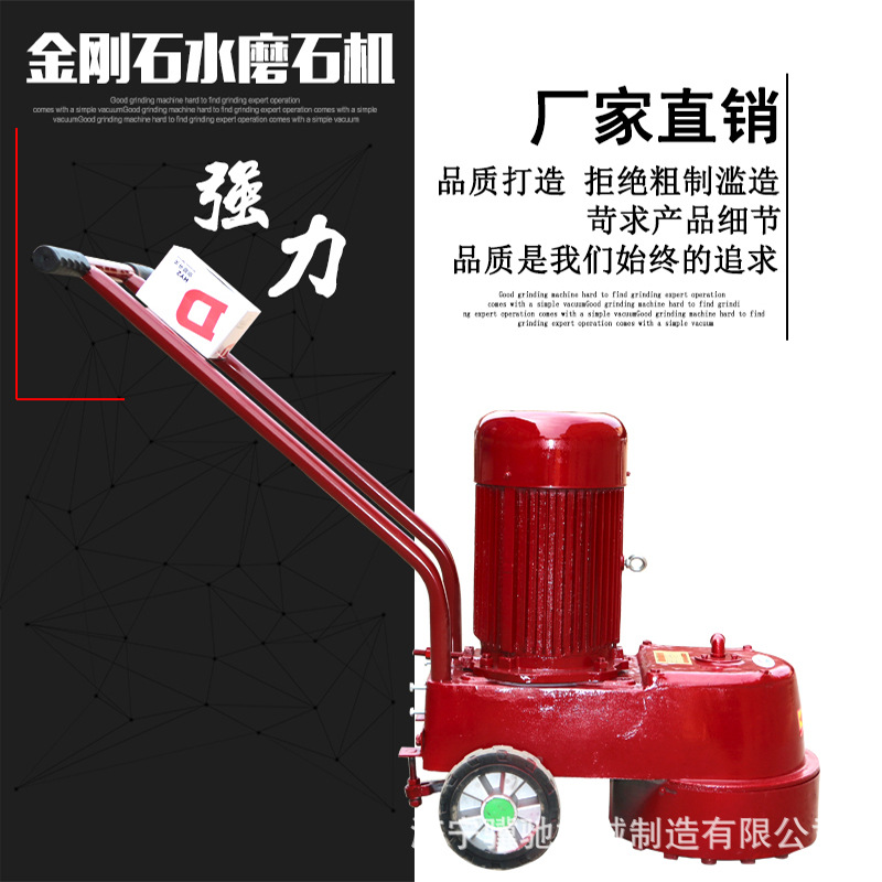 使用介绍:金刚石地面水磨石机是以人造金刚石为磨料的高效节能的新型建筑机械,本产品主要用于建筑物水磨地面与砌块的磨平与抛光(换上精磨头即可抛光)。适用于水磨石地坪的磨平与磨光,路面水泥制品及各种板材的磨削。