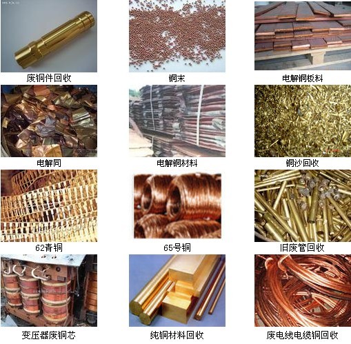 长期面向中小企业、大型工厂、发电厂、铸造厂、加工厂、轧钢、厂、炼油厂、化工厂、钢铁厂、冶炼厂、电子厂、食品厂、水泥厂、电镀厂、制冷设备厂、 电器厂、纺织厂、啤酒厂、企事业单位、酒店、商场、火车站、机场、码头、中外合资企业、台资企业、电信、移动、铁通、网通公司、地铁公司、供电公司、建筑工地及集团公司等回收各类废光亮铜、1号铜、2号铜、马达铜、紫铜、黄铜、青铜、白铜、废铜材、电解铜、废杂铜、废铜制品、铜废料、废铜金属、废铜合金、废铜线、火烧线等废铜产品回收。