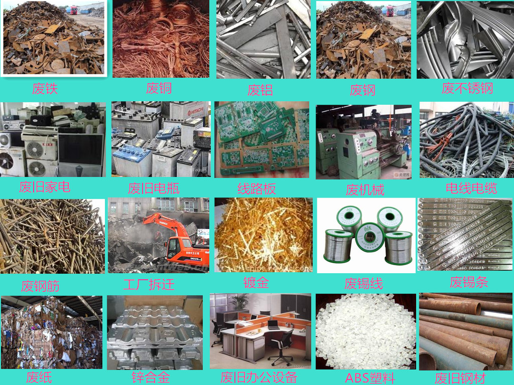 (4):有涩金属:废不锈钢,废铜铝,紫铜黄铜,废旧电线电缆,废锌钼,废镍等稀有金属。