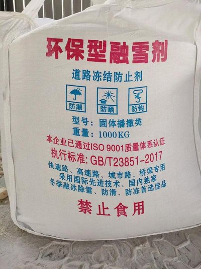 环保型融雪剂:环保型融雪剂是一种新型的融雪剂,它具有对环境无污染、无腐蚀性等特点。这种融雪剂可以适用于不同温度下的所有场所,包括高速公路、广场、码头、机场等。环保型融雪剂的包装通常是25KG,内袋为PE热合袋,外袋为聚吨袋。