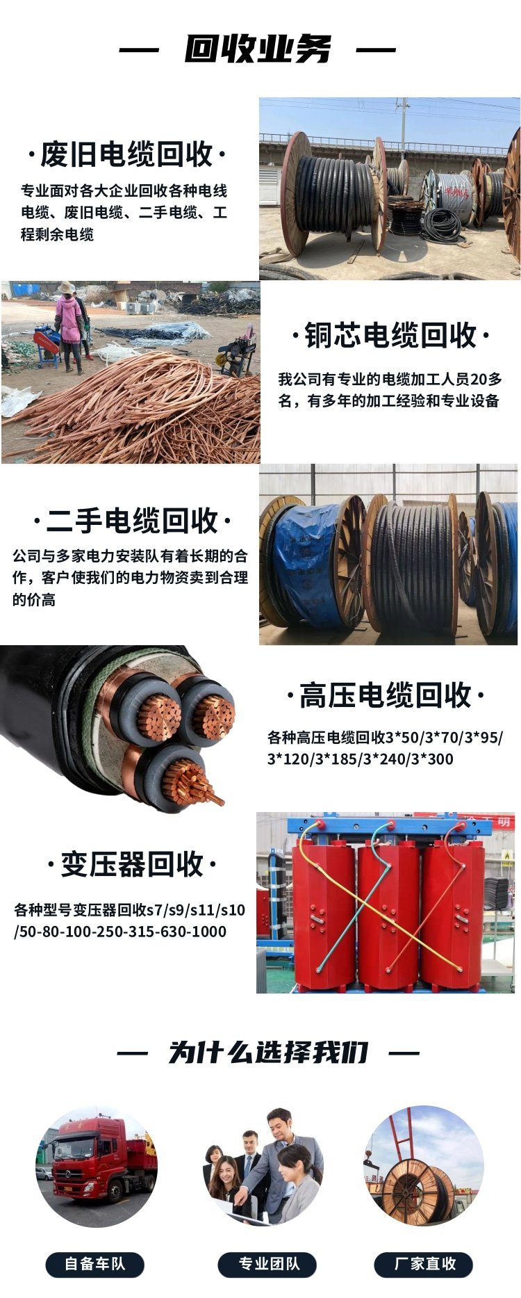 2、电力电缆回收:长期*提供中、低压电力电缆、高压电缆、超高压电缆、特高压电缆、阻燃电缆、交联电缆、油浸、塑料、橡皮绝缘电力电缆、架空绝缘电缆回收服务。