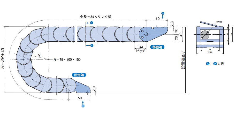 | 34 | 25 | 90 | 100 | 250~270 | 34mm以上 |