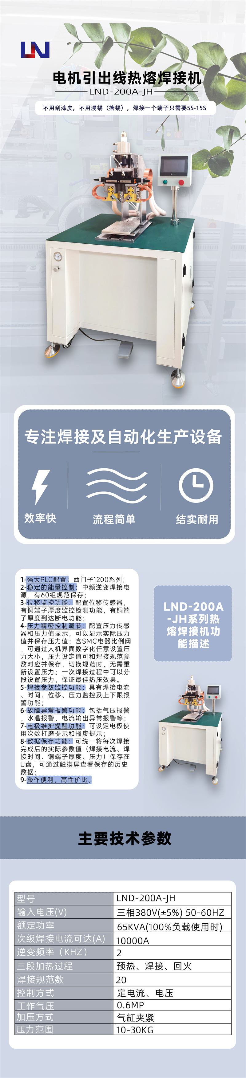 蓝能智能永磁同步电机铜端子导线排线电阻硬钎焊中频焊机