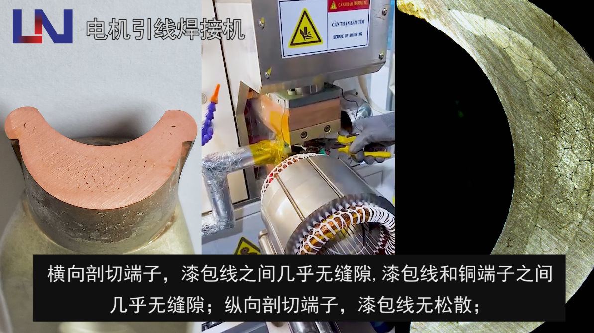 焊接应用于:漆包线(电磁线)和铜端子(铜管)焊接。主要行业:新能源汽车电机、物流车电机、旅游电动车电机、