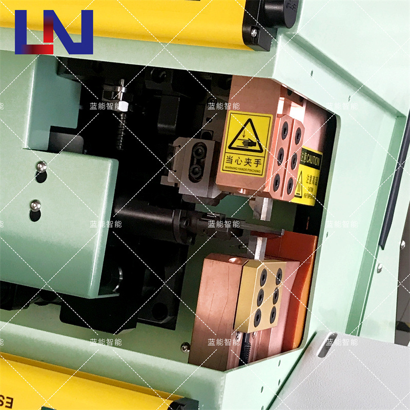 本设备通过自动卷料形成G型端子,人工上料后,设备对组合焊件压焊并加热,使其产生塑性变形、融化(漆包线漆皮完全碳化),并通过再结晶和扩散等作用形成端子,使组合焊件熔接。