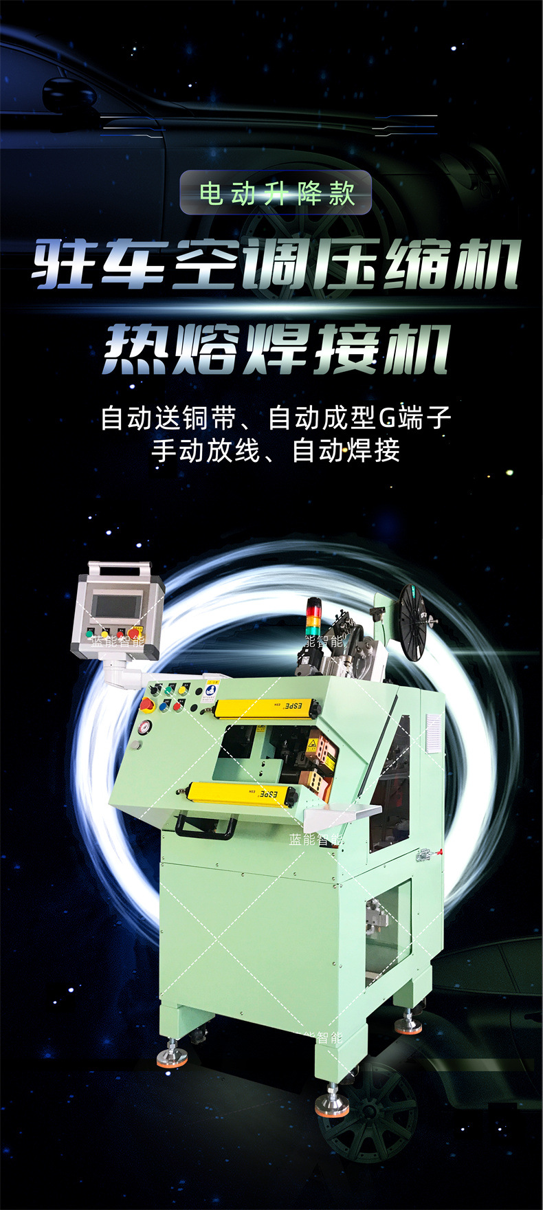 1-可以实现电机定子星点线漆包线自动压接焊接,漆包线和引出线连接时自动压接焊接;