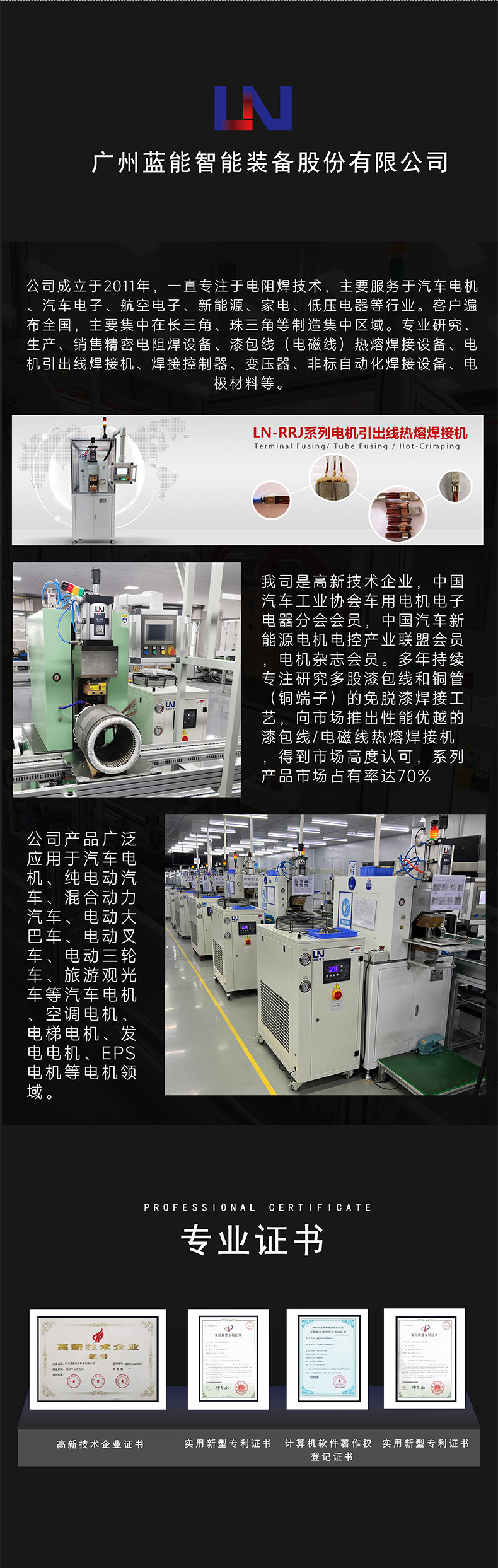 蓝能智能电机定子铜端子排线编织线热熔焊接机