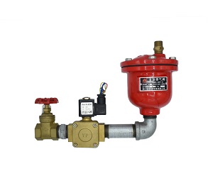| ZSFPd25电磁排气阀组说明 电动型自动排气阀组由自动排气阀、闸阀、消防电磁阀及管道附件组成,用于干式与预作用系统中,安装于系统管道的顶端、末端及充水转弯等处。 在系统动作充水排气时,加快系统的气水转换时间,确保系统在火灾初期即出水灭火,缩短响应时间;减少火灾时爆破喷头处的排气而助燃火势,提高系统灭火的效率与可靠性。 ZSFPd25电磁排气阀组技术参数