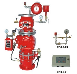 预作用装置由预作用报警阀组、控制盘、气压维持装置和空气供给装置组成,通过电动、气动、机械或其他方法进行开启,使水能够单方向流入喷水系统同时进行报警的一种单向阀组装置。 预作用装置和闭式喷头、充气设备、供水设施和管道等组成预作用系统,在准工作状态时配水管道内不充水。根据预作用系统的使用场所不同,预作用装置有两种自动控制方式,一是仅由火灾自动报警系统一组信号联动开启,二是由火灾自动报警系统和充气管道上设置的压力开关两组信号联动开启。 预作用系统将火灾自动报警系统和自动喷水灭火系统结合起来,对保护对象起双重保护作用预作用系统既兼有湿式、干式系统的特点,又避免了湿式、干式系统的缺点,在不允许出现误喷或管道漏水的重要场所,可替代湿式系统使用;在低温或高温场所中替代干式系统使用,可避免喷头开启后延迟喷水的缺点。 产品标准:GB5135.14《自动喷水灭火系统 第14部分: 预作用装置》 设计规范:GB50084 《自动喷水灭火系统设计规范》 验收规范:GB50261《自动喷水灭火系统施工及验收规范》 2、瑞城预作用报警阀ZSFY主要性能和技术参数