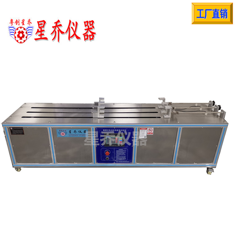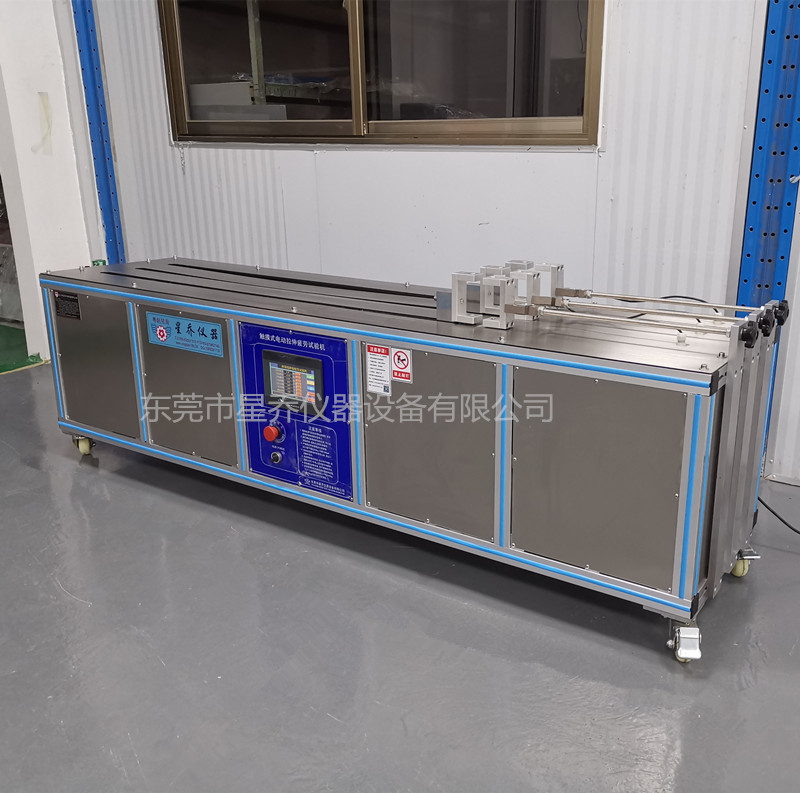 本试验机用于摸拟使用中软性弹力材料拉伸耐疲劳测试,本机采用台湾进口智能7寸触摸屏全中文显示,传动机构采用伺服变速箱+精密滚珠丝杆,电机采用精密伺服驱动,精密PLC+星乔自主研发测试软件,调节数控方式行程、速度、次数,触摸屏内任意设置,精度高,噪音小,寿命长评估弹力材料经过长时间测试后受损情况测试。