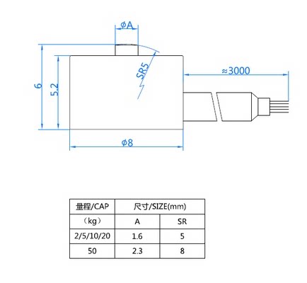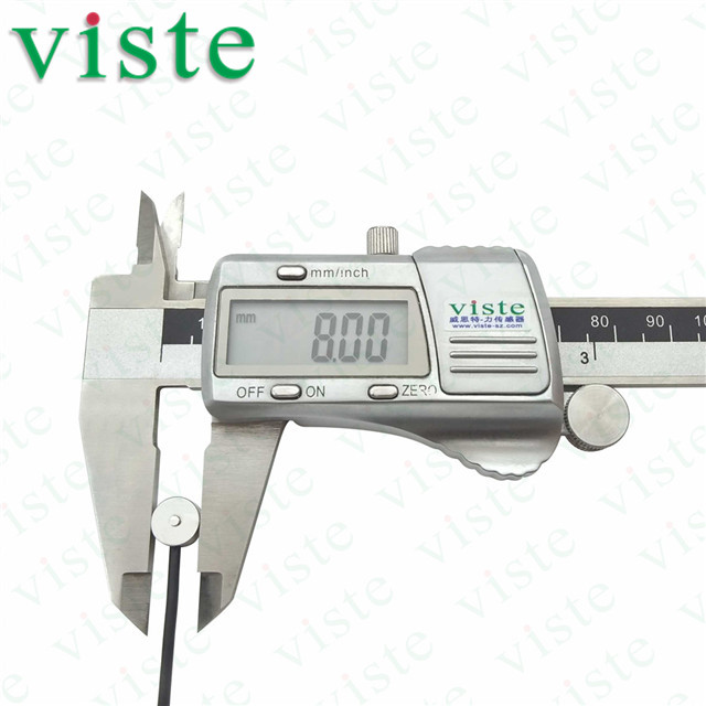 VC08薄小圆形压力传感器特点:小空间测力,外形尺寸小,高度6mm ,直径8mm,不锈钢材料 ,模拟信号输出(mV/V)。可以配置变送器(V输出/mA输出)、数显仪表、plc控制。可根据要求订制。