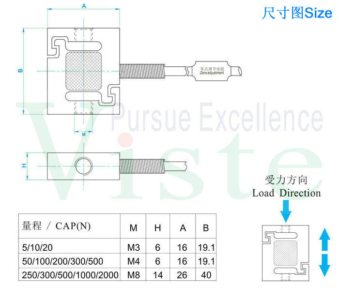 超小型推拉力传感器VS16可同时测试拉力和压力,自身防过载结构,不锈钢材料。模拟信号输出(mV/V)输出。可以配置变送器(V输出/mA输出)、数显仪表、plc控制。可根据要求订制。