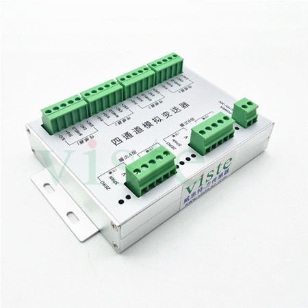 0~5v、0~10v、0~±5v、0~±10v,四路可独立调节。可直接与自动控制设备PLC、单片机、上位机终端等接口或者计算机联网。具备标准信号外调零、外调增益功能,输入过压保护,输出短路保护。