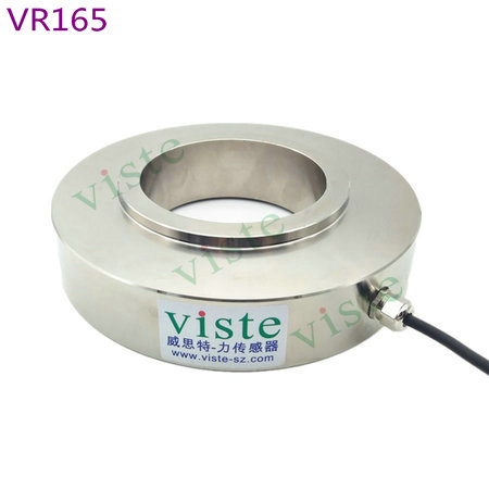 环形荷重传感器VR165特点:不锈钢材质,环形结构,内径85mm,不带螺牙。电阻应变式原理。可外接我司多功能显示仪表一起配套使用。可连接PLC采集数据。