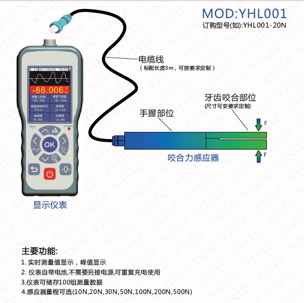 我们可以为您提供整套实用的咬合测力方案。显示器可选有线或无线.可以实时采集力值并保存数据。