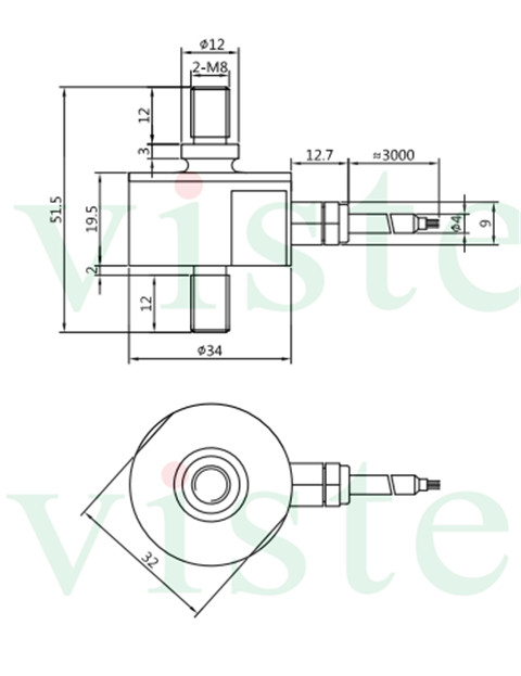螺纹式推拉力传感器VL34特点:双向M8螺杆,可测量拉压双向力值,激光焊接,长期稳定性好,电阻应变式原理。可外接我司0-10V/4-20mA信号变送器一起配套使用。可连接PLC数据采集。