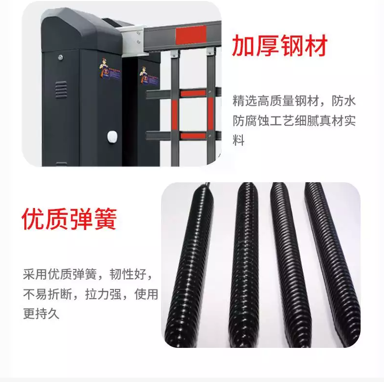 空降闸采用多压簧模式,常规道闸采用拉簧模式。