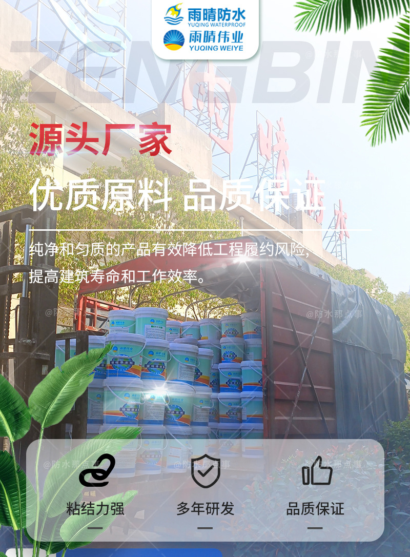 雨晴伟业招远深层渗透结晶型抗渗防腐剂销售厂家生产渗透结晶型抗渗防水剂的工厂,经过多年的研究创新,产品不断推陈出新,主要包括:渗透结晶型抗渗防水剂、PB改进型桥面防水涂料、PBR纤维增强型桥面防水涂料、PBL-II纤维增强型防水涂料、PB-2水性沥青基防水粘结层、氯化聚乙烯双面带纤维防水卷材、PBR-1道桥防水涂料、蠕变型防水卷材、双组分喷涂速凝高弹橡胶防水涂料等系列产品。我们坚持以质量求生存,以信誉求发展,竭诚地为招远公路、铁路、建筑等领域的建设作出应有的贡献。诚挚的希望与招远渗透结晶型抗渗防水剂客户在互惠互利友好合作的基础上,建立良好的贸易关系,携手并进!共创美好未来!