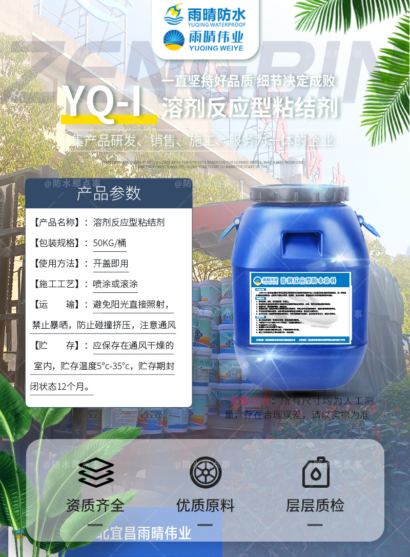 以下是路桥用溶剂型粘结剂产品介绍、路桥用溶剂型粘结剂施工方法、路桥用溶剂型粘结剂用量的一些技术指标,更多详细信息请联系:曾工。恩施鹤峰溶剂反应型粘结剂销售厂家是一家从事铁路、公路桥梁、建筑防水材料的生产加工、施工于一体的防水工程材料公司。有自己的防水材料生产线,工厂供应恩施鹤峰路桥用溶剂型粘结剂、PBR-2改进型聚合物防水涂料、PB聚合物防水涂料、PB-2聚合物防水涂料、PB-1改性沥青道桥防水涂料、丙烯酸盐喷膜防水、JBS聚合物改性沥青防水涂料、深层渗透结晶型抗渗防腐剂,PBR-2水性沥青基防水涂料。雨晴防水是一家集防水材料、防水涂料、防水卷材的研发、生产、防水施工于一体的现代化技术防水企业。