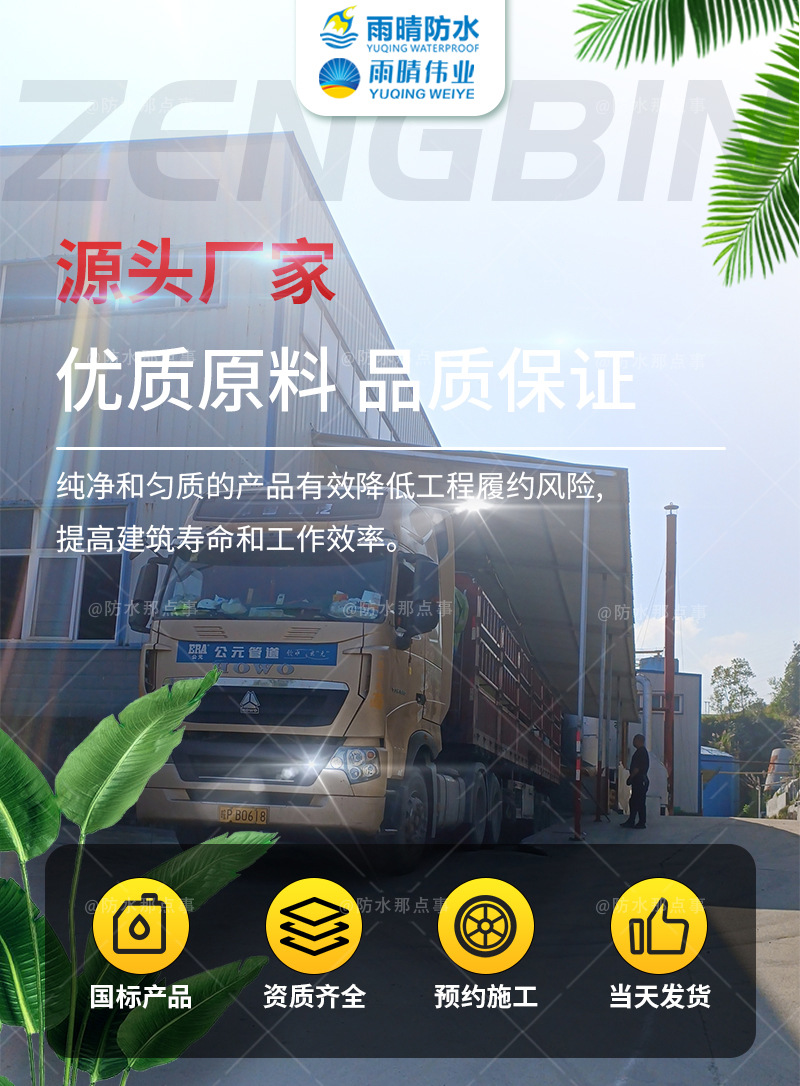 三亚改性沥青防水卷材销售厂家是一家生产高分子膜基防水卷材、PBL聚合物改性沥青防水涂料、PB-II高聚物道桥防水涂料、环保纳米防水剂、丙烯酸共聚物基混凝土保护剂、PBR水性沥青基道桥防水涂料、公路抗裂贴卷材、PB水性沥青基桥面防水涂料、蓄水池无机水性防水剂等产品。加工生产,销售,服务于一体的生产加工企业,拥有完整、科学的质量管理体系。“以客为本,开拓创新”是雨晴防水企业精神。数年雨晴防水人一只凭着这不懈的精神,将整体性发挥,创造出高素质,高科技,高品质精品;通过在服务社会而不断发展和壮大,在创造中不断升华,力求将技术优势发挥到位,使更多人能享受现在精彩生活而再攀高峰!三亚改性沥青防水卷材销售厂家的诚信、实力和产品质量获得业界的认可。欢迎三亚高分子膜基防水卷材各界朋友莅临参观、指导和业务洽谈。