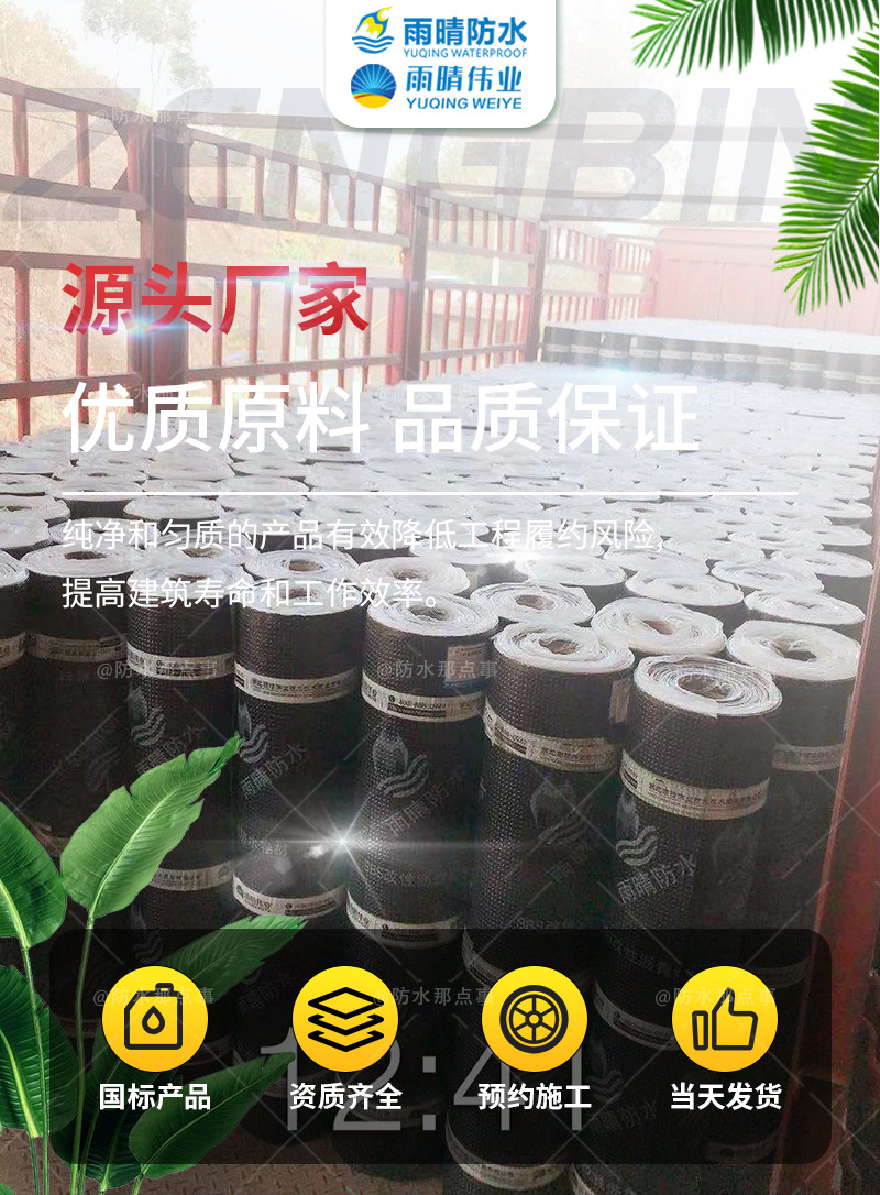 以下是高分子强力交叉膜自粘卷材产品介绍、高分子强力交叉膜自粘卷材施工方法、高分子强力交叉膜自粘卷材用量的一些技术指标,更多详细信息请联系:曾工。合肥改性沥青防水卷材销售厂家是一家从事铁路、公路桥梁、建筑防水材料的生产加工、施工于一体的防水工程材料公司。有自己的防水材料生产线,工厂供应合肥高分子强力交叉膜自粘卷材、公路自粘式抗裂卷材、PBL-2高聚物桥面防水涂料、喷涂速凝高弾橡胶沥青防水涂料、FYT-2改进型高聚物防水涂料、桥面用溶剂型粘结剂、PB-I水性沥青基防水涂料、FYT-1水性沥青基道桥防水涂料,液体防水卷材。雨晴伟业是一家集防水材料、防水涂料、防水卷材的研发、生产、防水施工于一体的现代化技术防水企业。