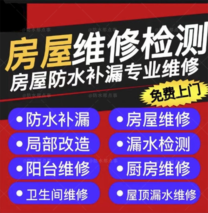 主要承接卫生间补漏施工、厨房防水维修、彩钢屋顶做防水补漏补漏等业务,有信心包20年不漏水,全市均免费上门勘察报价。