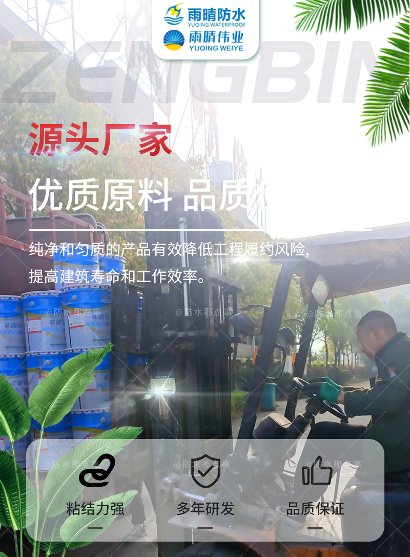 雨晴伟业嵊州非固化橡胶沥青防水涂料销售厂家是一家具有蠕变反应型高分子防水涂料、FYT-2改性沥青聚合物防水涂料、双组分喷涂速凝高分子防水涂料、改性聚氨酯桥面防水粘接剂、高粘抗滑移防水涂料、有机硅高效防水剂、FYT改性沥青聚合物防水粘结层、双组分喷涂速凝橡胶沥青防水粘结层、喷涂速凝沥青桥面防水粘结层生产、施工、服务能力较大规模的厂家,主要产品有:热熔非固化橡胶沥青防水涂料、环保蠕变型橡胶沥青防水涂料、蠕变反应型橡胶沥青防水涂料、非固化液体橡胶防水涂料、环保蠕变反应型高分子防水涂料、高分子蠕变反应型防水涂料、热涂型非固化橡胶沥青防水涂料、高分子蠕变型防水涂料等各种蠕变反应型高分子防水涂料产品。我公司具有现代化的生产设备和先进的生产技术,并在原有的基础_上开发,研制出多种款式的蠕变反应型高分子防水涂料,产品的多样化即美观大方又有较好的立体效应。