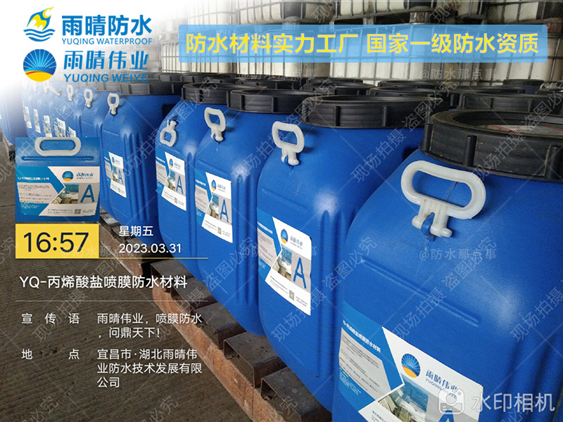 雨晴伟业专注双组分丙烯酸盐喷膜防水材料上十年,长期供应双组分丙烯酸盐喷膜防水材料,我公司集开发、研究、生产、销售、施工于一体,生产过程监管严格,生产质量过硬,如有需要神农架木鱼双组分丙烯酸盐喷膜防水材料请您及时联系我们:曾工,我们的技术人员将详细为您解答!