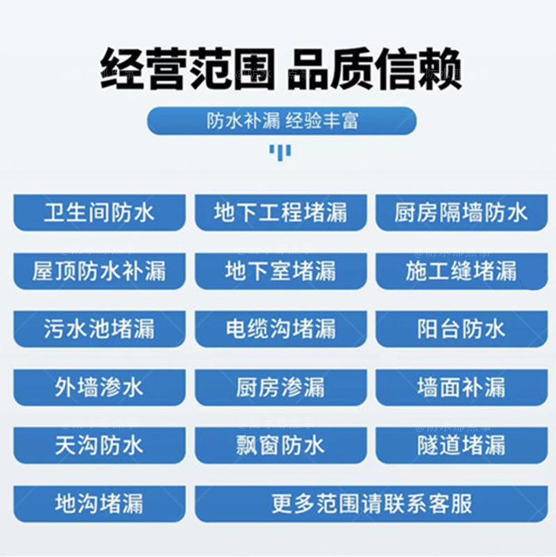 武昌武汉防水补漏公司,我们拥有一套完整的技术和施工方案,对特殊的渗水、漏水疑难杂症,我们有专门的解决方案;过硬的外墙面防水补漏技术,可靠的施工质量,10年以上防水师傅是您的可靠选择!