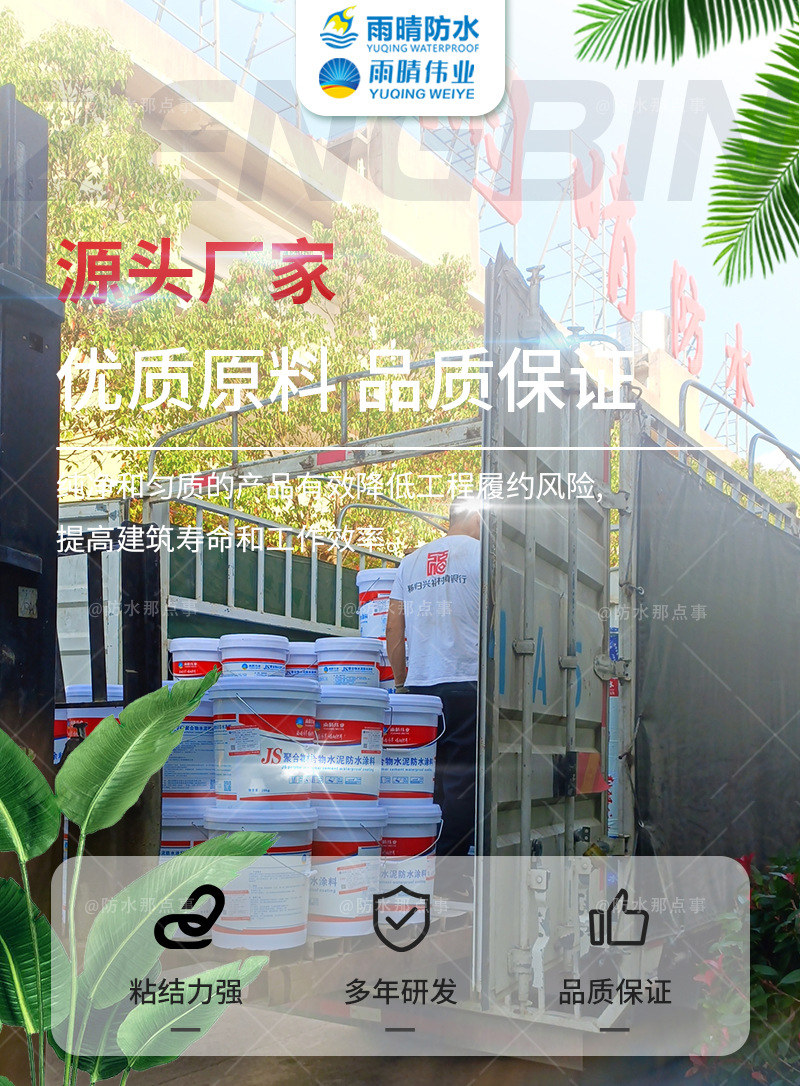 荆门钟祥水泥基渗透结晶型防水涂料销售厂家生产销售水泥基渗透结晶涂料、高粘抗滑水性橡胶沥青防水涂料、丁基橡胶冷自粘防水卷材、双组分喷涂速凝沥青道桥防水涂料、环氧沥青防腐涂料、强力交叉膜自粘防水卷材、道路抗裂贴自粘卷材、K11聚合物水泥基渗透结晶添加剂、高粘抗滑橡胶沥青防水涂料等多种规格水泥基渗透结晶涂料 。荆门钟祥水泥基渗透结晶型防水涂料销售厂家的诚信、实力和产品质量获得业界的认可 拥有完整、科学的质量管理体系。雨晴伟业集研发-生产-销售一站式服务于大众 .JS聚合物防水修补堵漏剂、K11聚合物水泥基防水涂料、JS聚合物防水增效剂涂料、K11聚合物防水修补堵漏剂、JS聚合物水泥基渗透结晶浓缩剂、K11聚合物防水剂涂料、JS聚合物防水剂涂料、K11防水涂料常规型号备有大量 欢迎广大新老客户来厂参观指导和业务洽谈。