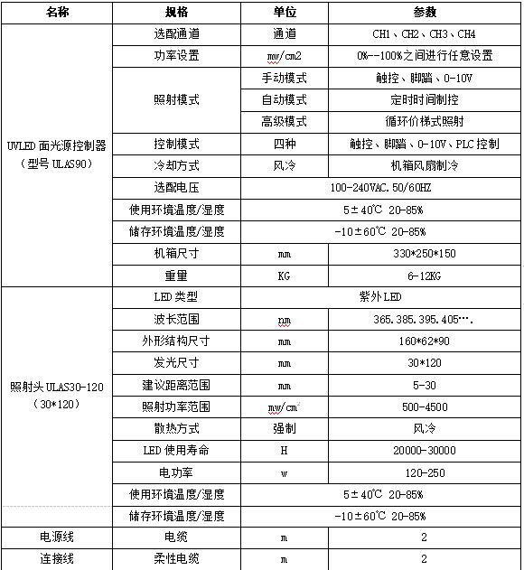 UVLED面光源ULAS30-120是指采用多组LED芯片按照一定比例和光学原理加工而成,可发出面型光斑为30*120的固化设备。根据实际使用过程中需求不同主要波长有365nm、385nm、395nm、405nm、…