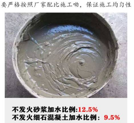 不发火防静电砂浆注意事项: 1:严格按照厂家配合比施工,不得自行更改,保证施工均匀性 2:分格用材料应为不发火材料,如利用金属条,一般利用铜条或铝条,严禁 用玻璃式硬质金属分格条。 3:金属分格条施工前应互相可靠连接,并与房屋主体构成有效等电位连接。 4:分格条不宜用不同种类混合使用。 5:在做不发火防静电水磨石地面的时候选用颗粒较大的不发火细石混凝土,浇筑厚度4cm 左右为宜。