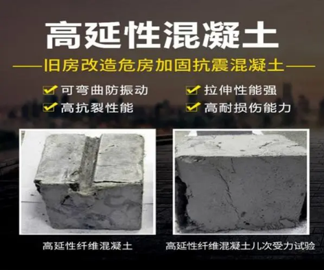 高延性混凝土是由胶凝材料、集料、外加剂和合成纤维等原材料组成,按一定比例加水搅拌、成型以后,具有高韧性、高抗裂性能和高耐损伤能力的结构材料,可用于砌体结构和混凝土结构的加固,应用于中小学校舍、历史风貌建筑、大型公共建筑、办公楼以及农危房的加固修复。一、高延性混凝土描述