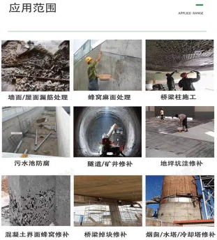 2.梁、柱、桥梁,烟囱,水渠,大坝,污水池,化工厂,道路,电厂等修复。
