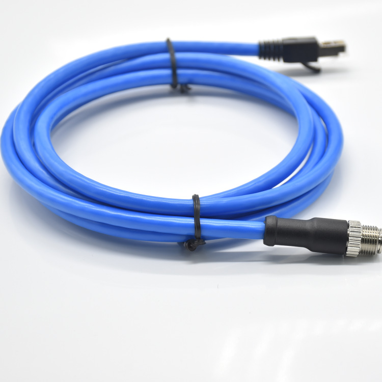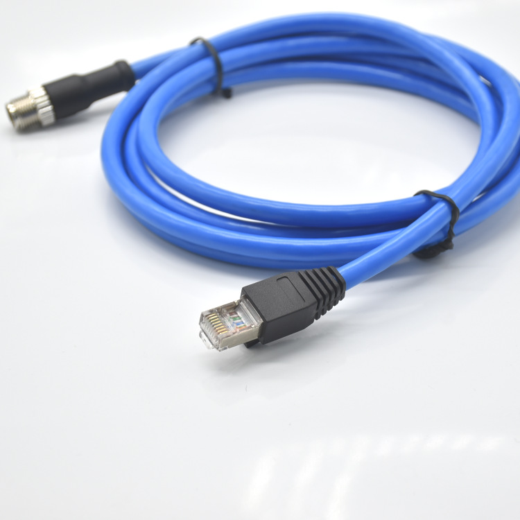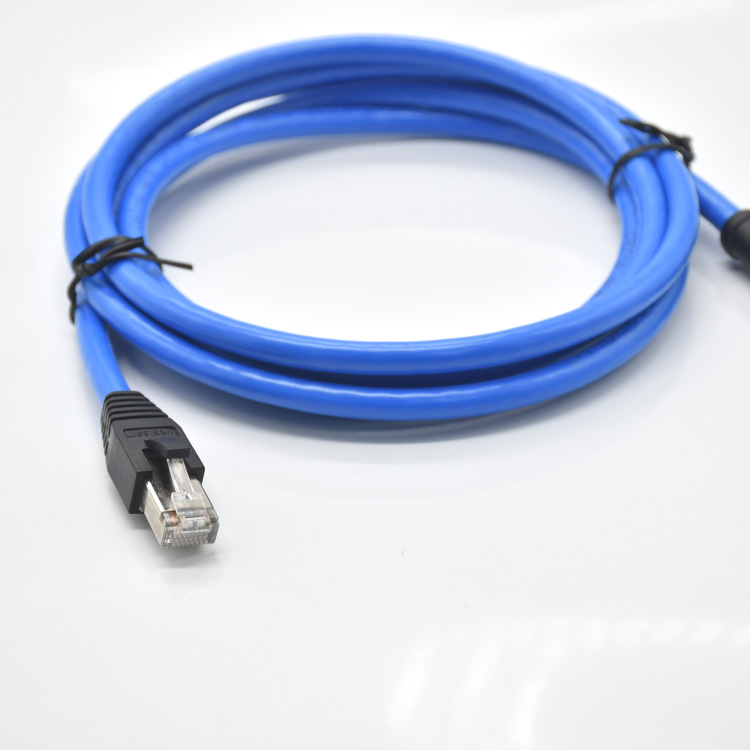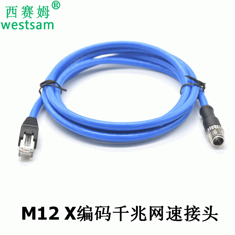 商品名称: 交换机用M12 X编码8芯公直头转RJ45水晶头 传输千兆网速连接器M12-X接头 超6类网线(线长1m 2m 5m 可以定做线长)超6类线 m12 X扣万兆网络连接器 线缆外皮有蓝色和黑色两种 一般为黑色