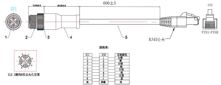 M12 X编码8P公头转RJ45水晶头 传输千兆网速连接器 |
