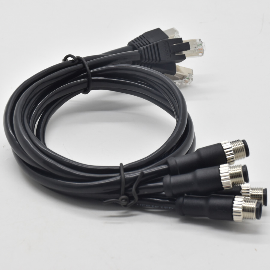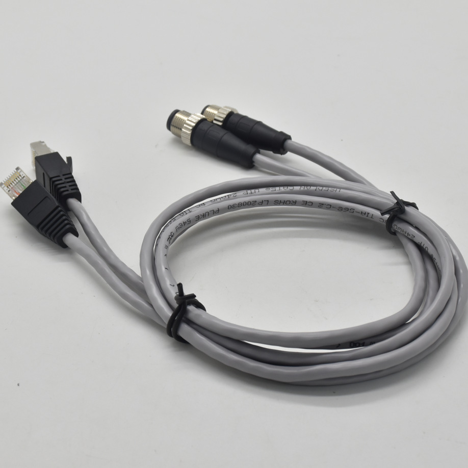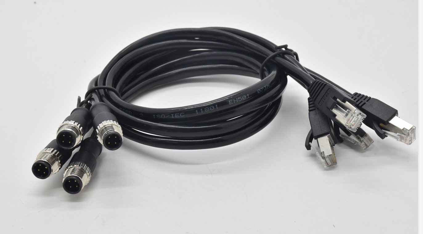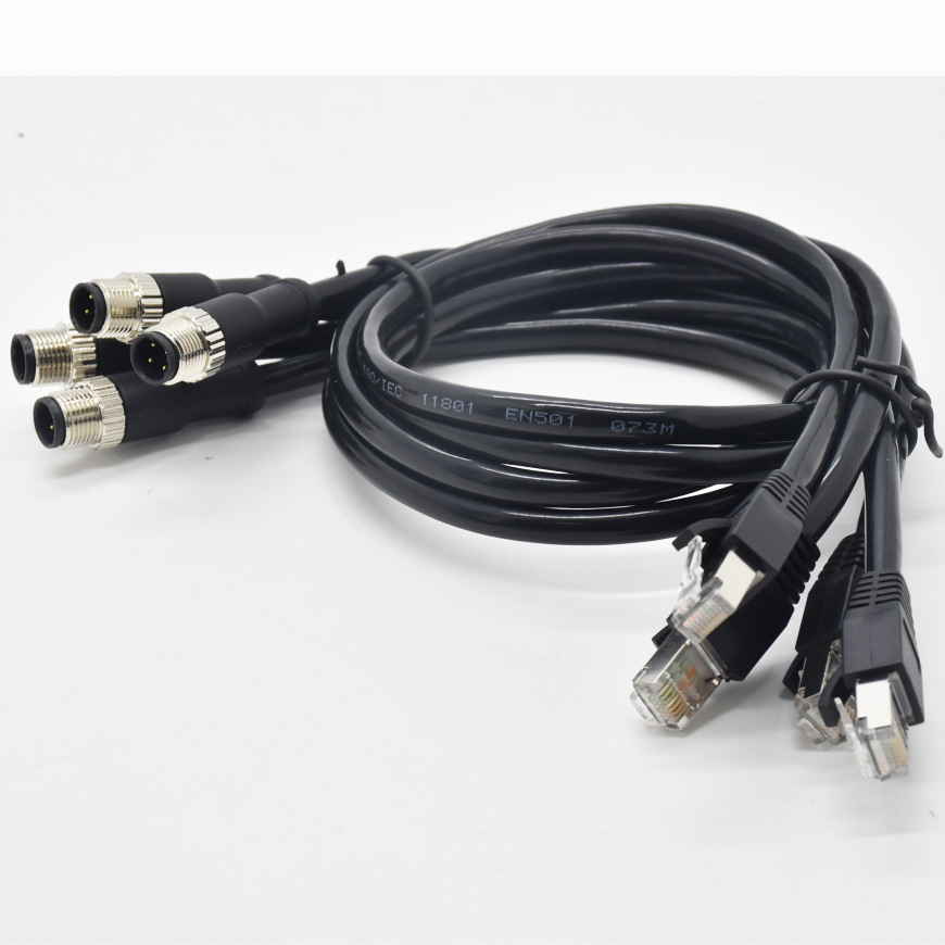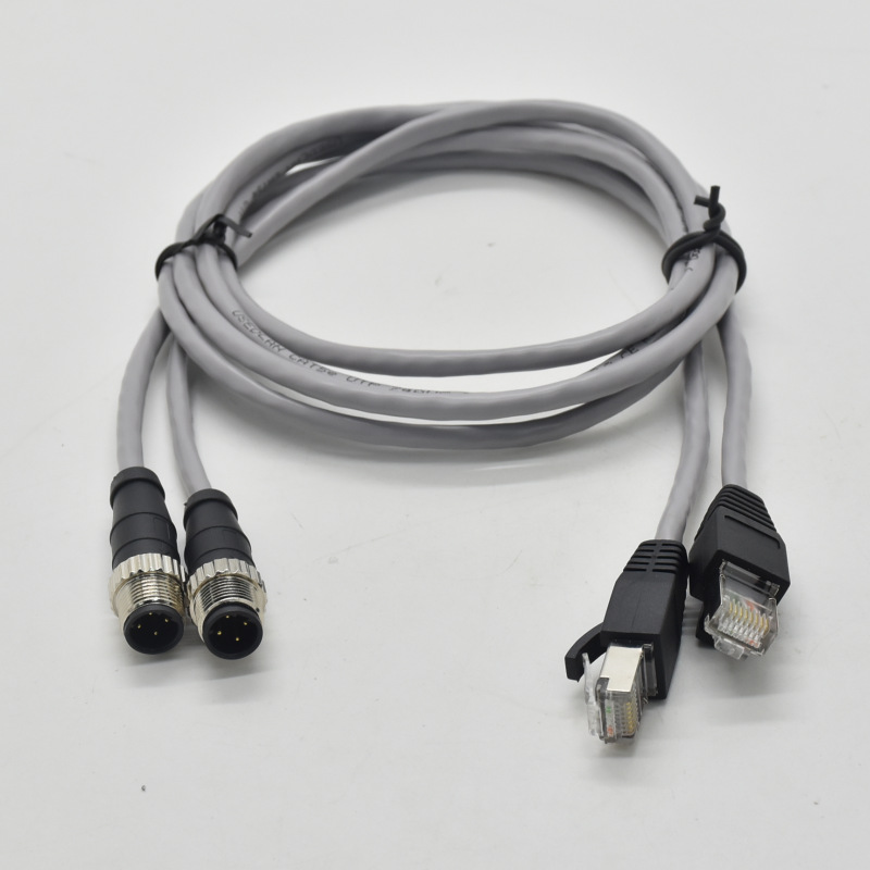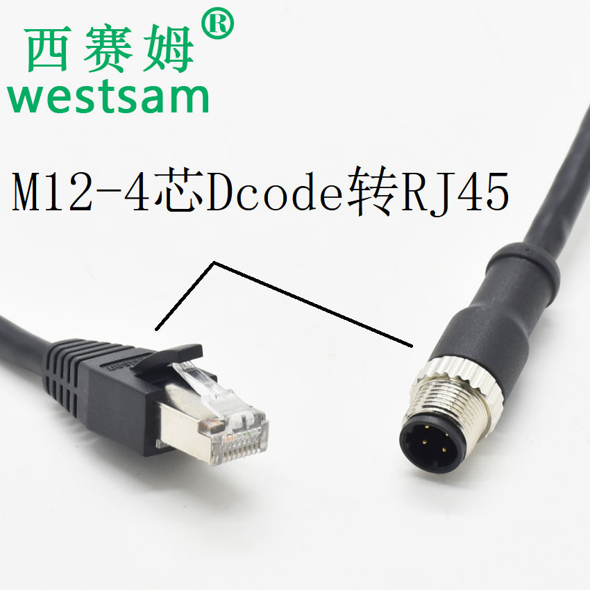 M12-4芯D扣转RJ45带网线插头传输线束圆形接插件M12防水连接器 |