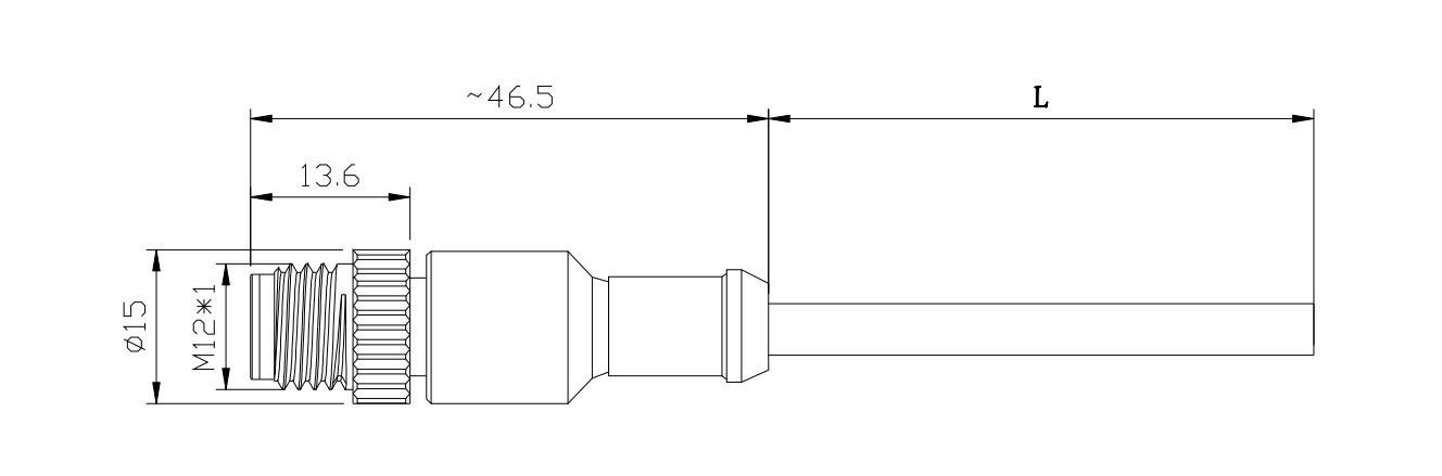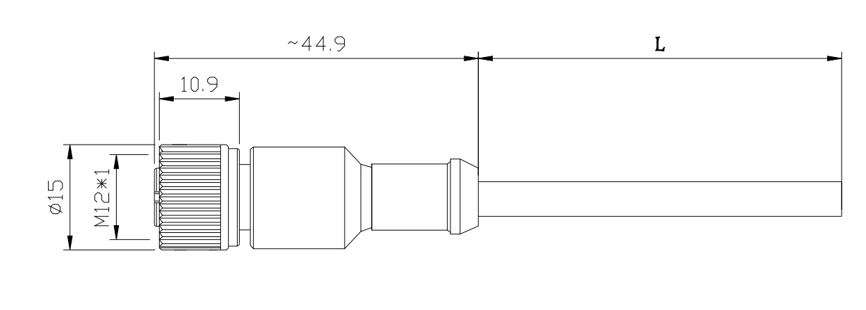 产品尺寸图(线缆规格有PVC、PUR ,带屏蔽和非屏蔽,长度任选