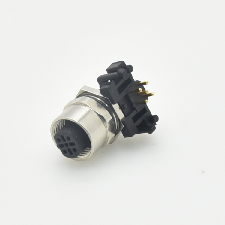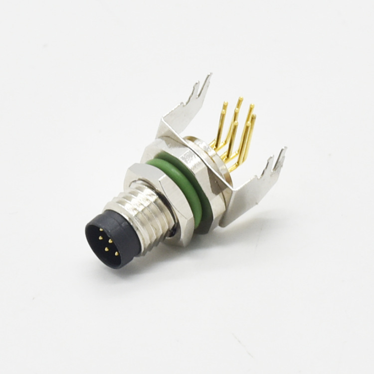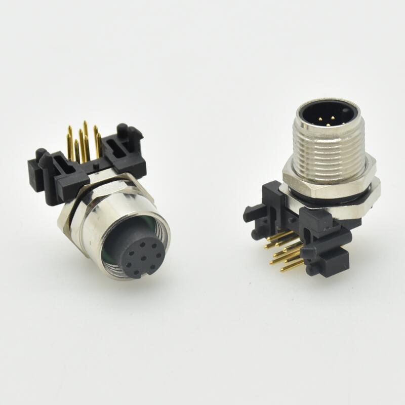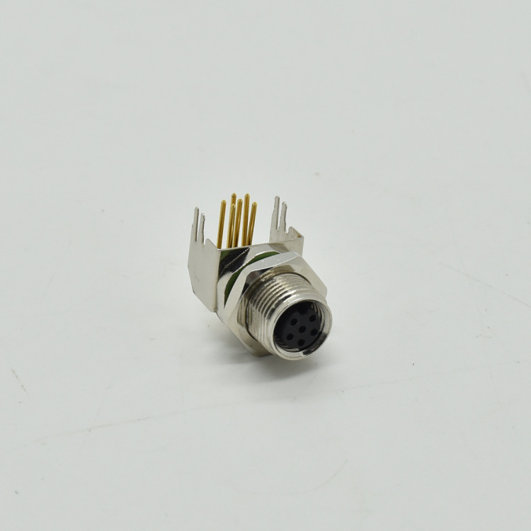 航空插头螺纹连接M12-Acode铁路信号传输5芯 M12连接器PCB板弯针