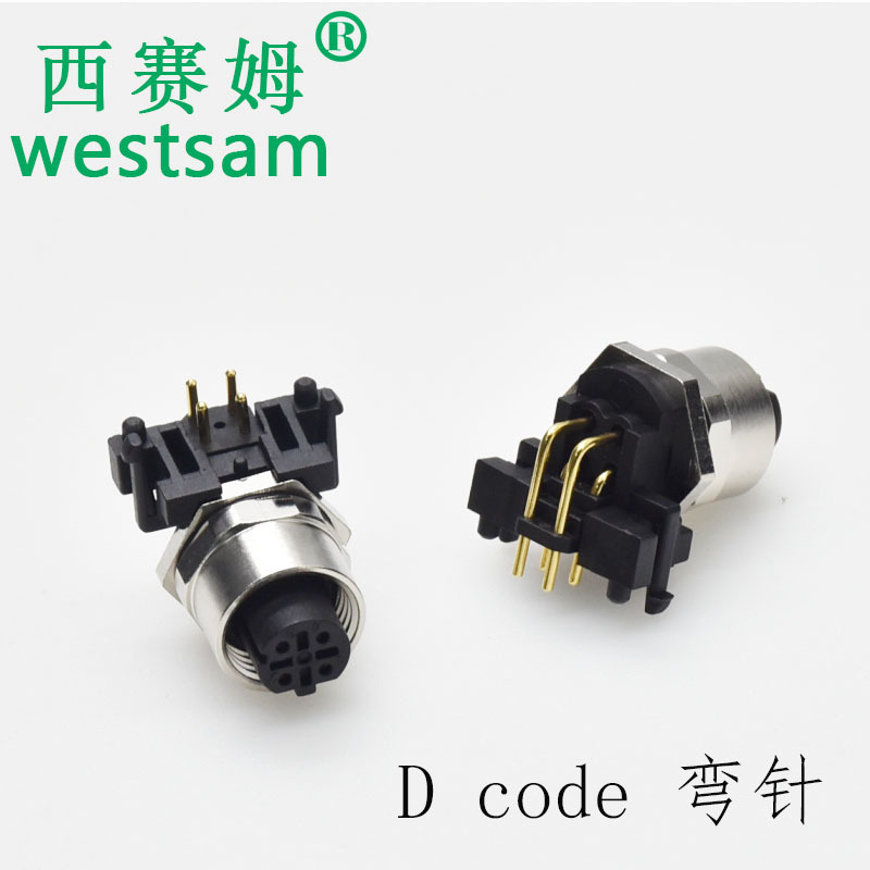 M12-4芯Dcode母头弯针,板接针