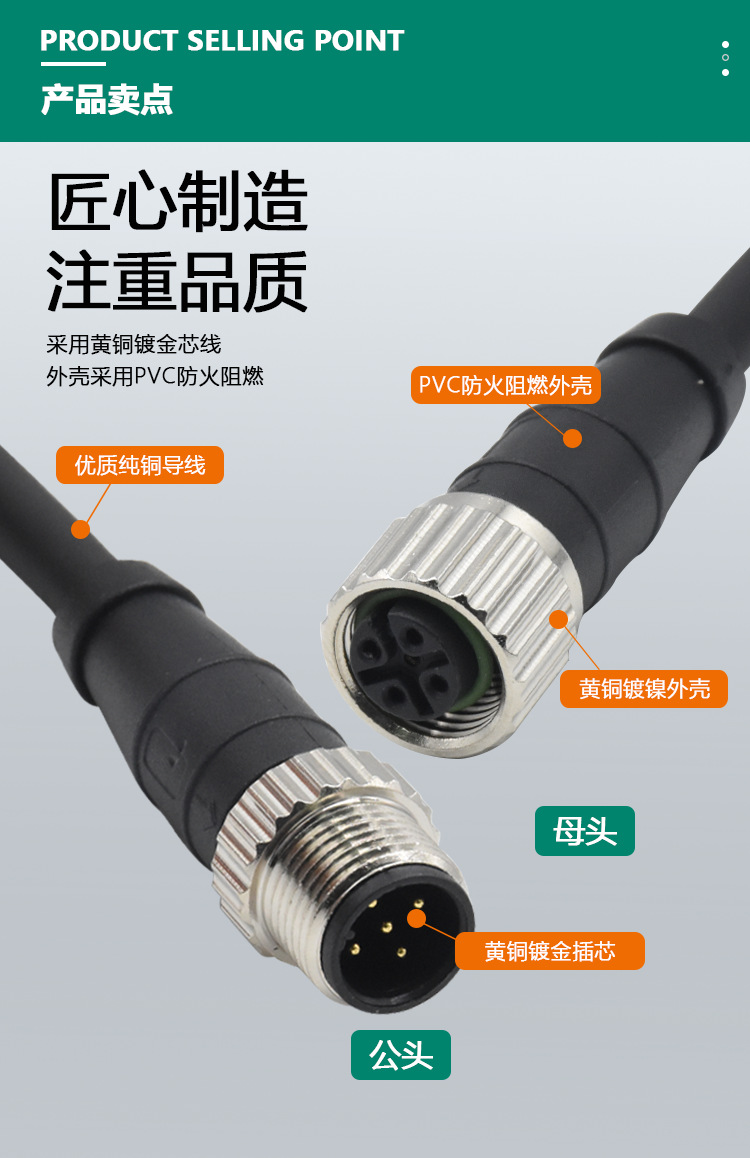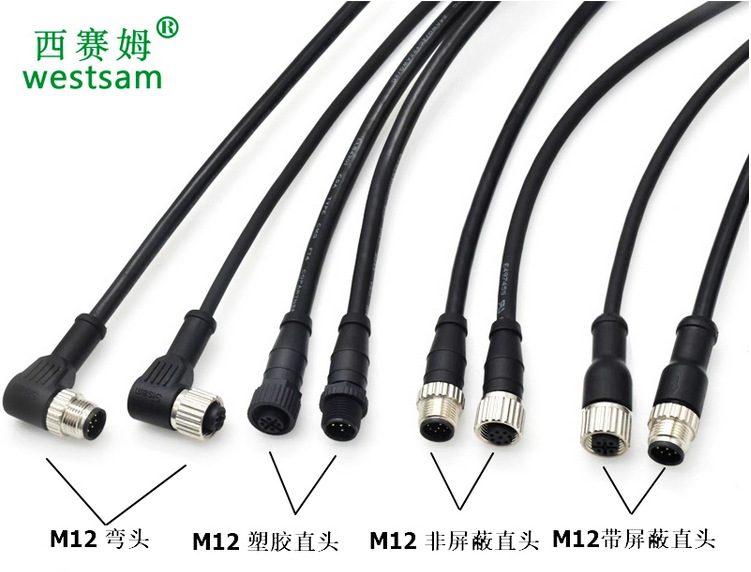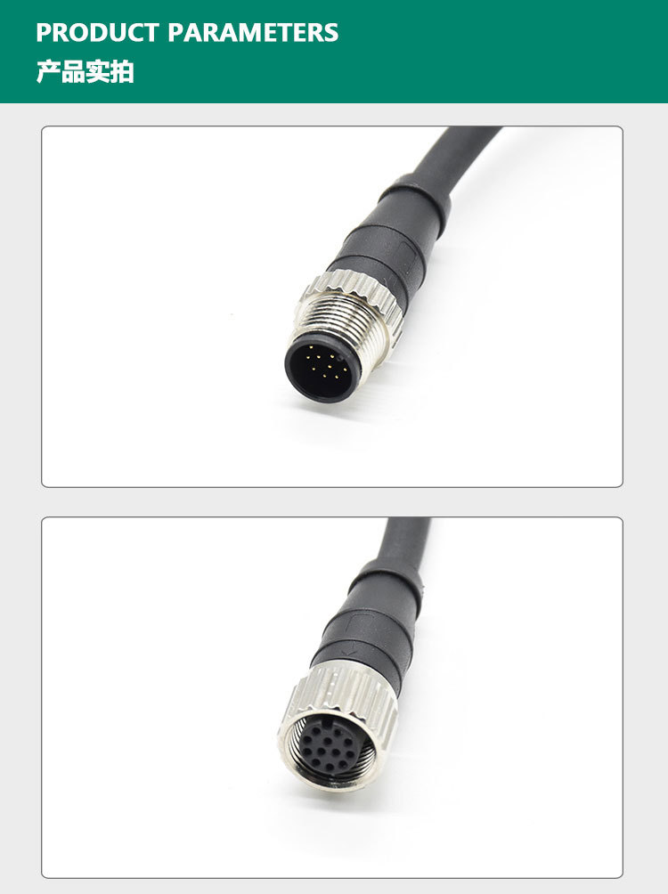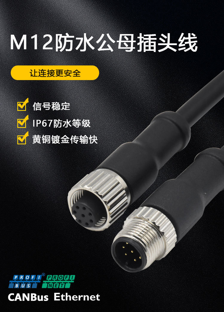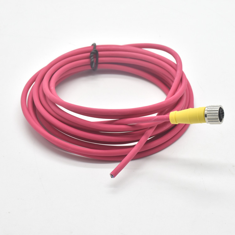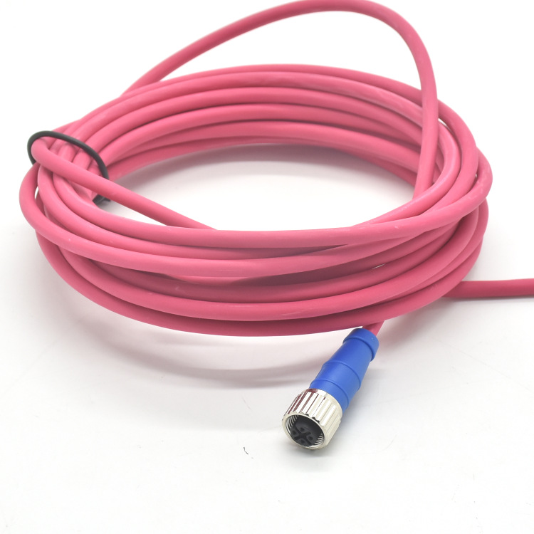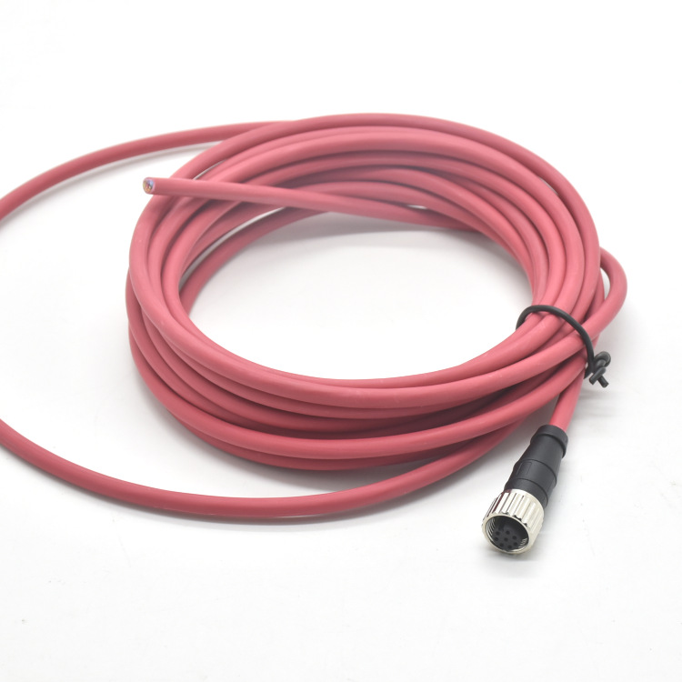 商品名称:汇林定制红色线PUR电缆M12-4P 8P防水连接器-工业自动化接头