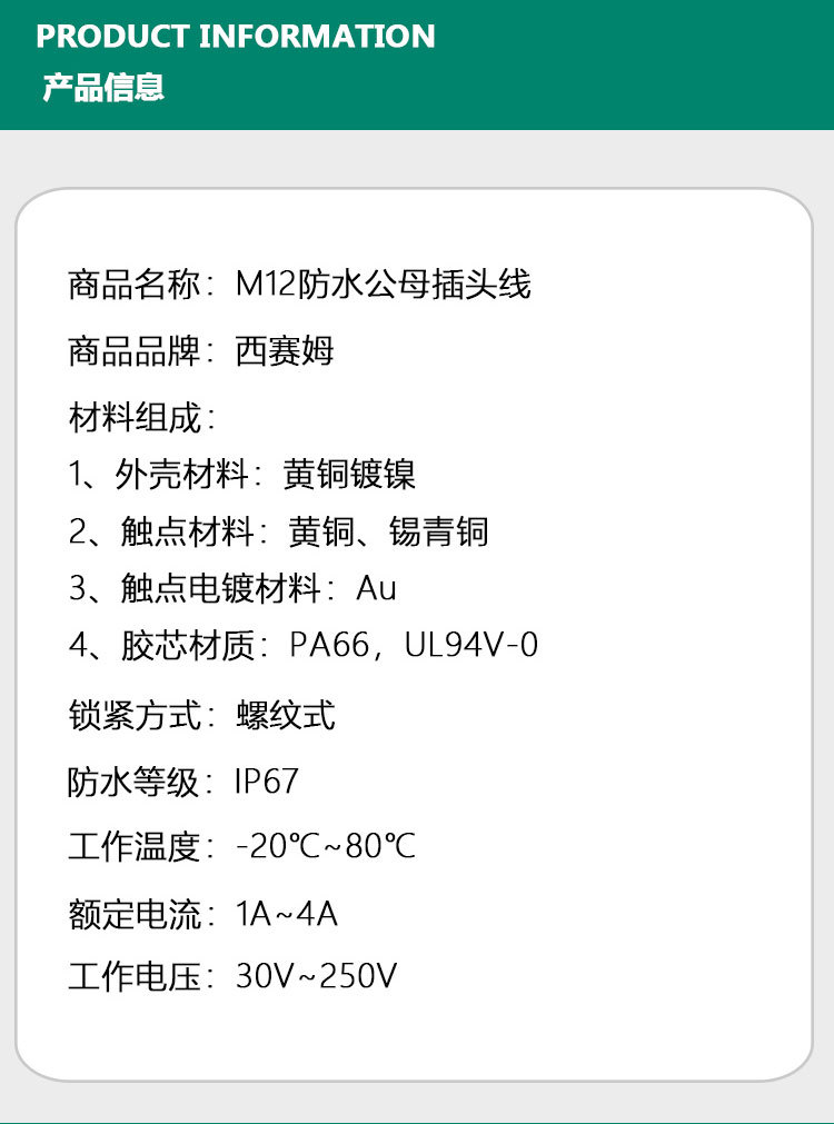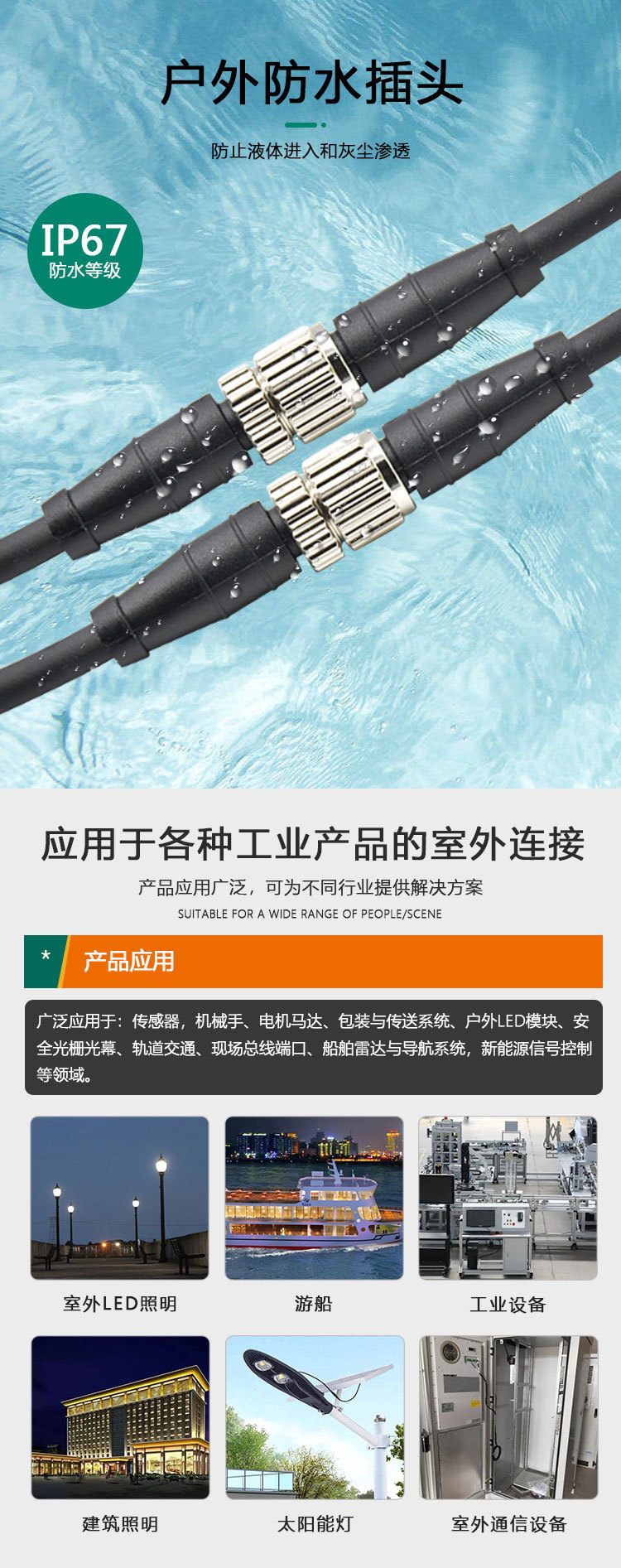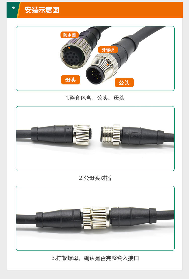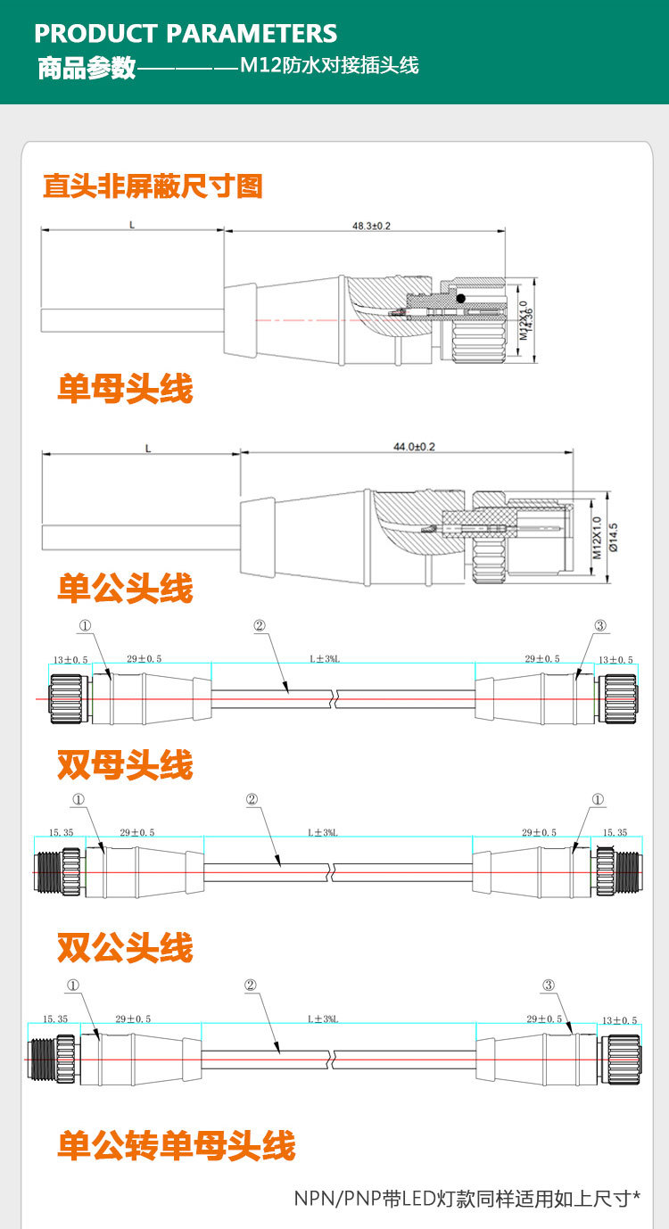 商品名称:汇林定制红色线PUR电缆M12-4P 8P防水连接器-工业自动化接头