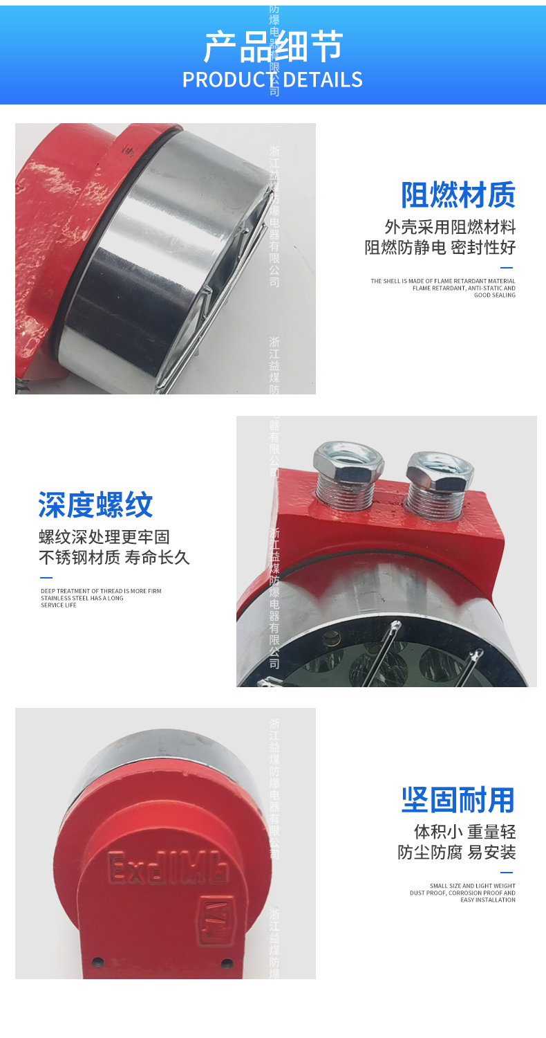 适用于含有甲烷和煤尘爆炸性混合气体的环境中。