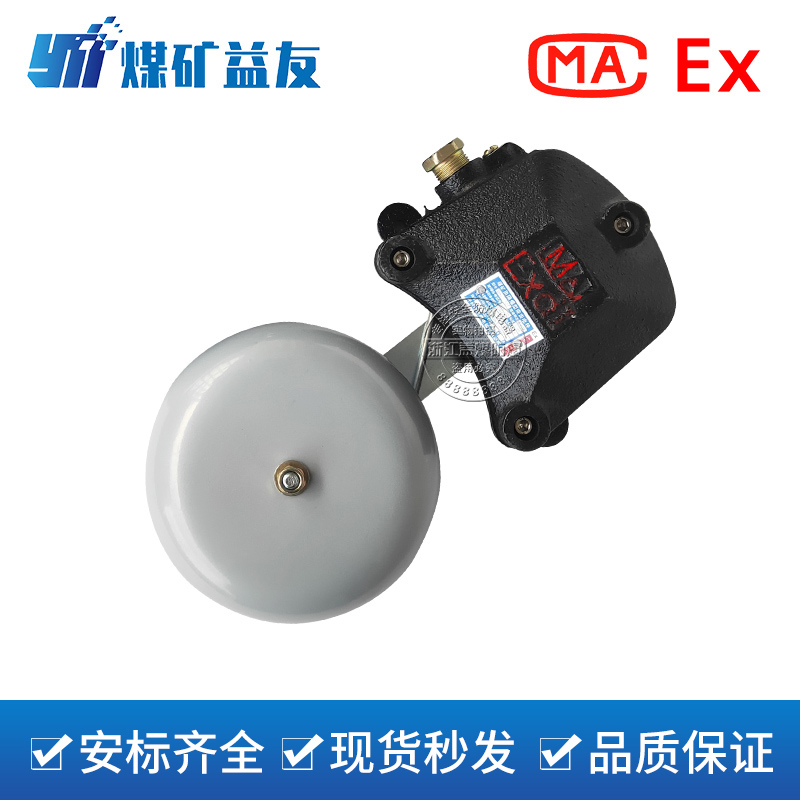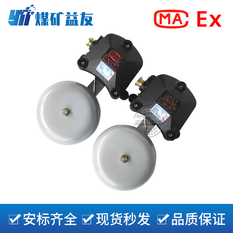 BAL系列矿用隔爆型连击电铃主要适用于煤矿井下及其周围介质中有甲烷、煤尘等爆炸性气体的环境中,在交流50Hz、额定电压36V(或127V)供电网路中,接受打点器、拉点器、按钮控制的信号发出音响,作信号联络或警示之用。