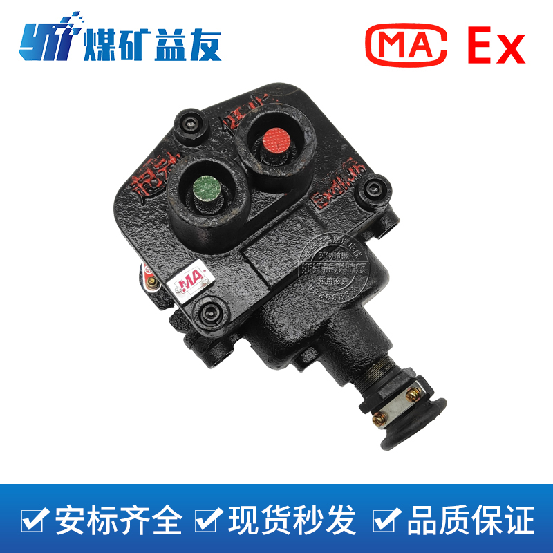 主要适用于具有爆炸性气体(甲烷)混合物的煤矿井下,接入36V及以下的控制线路中,直接与接触器配合,对信号、电磁起动器等设备进行远距离控制。其中一钮用于单向点动,二钮用于单向起动,三钮用于可逆起动的控制线路中。
