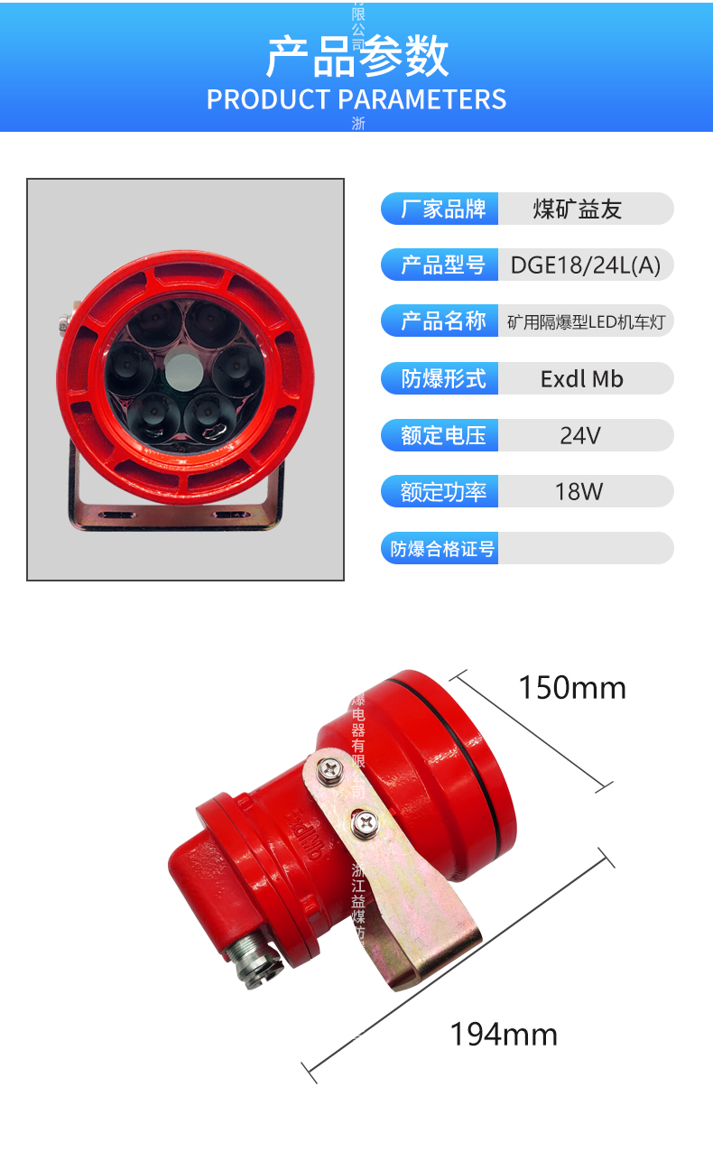 DGE18/24L(A)矿用隔爆型LED机车灯