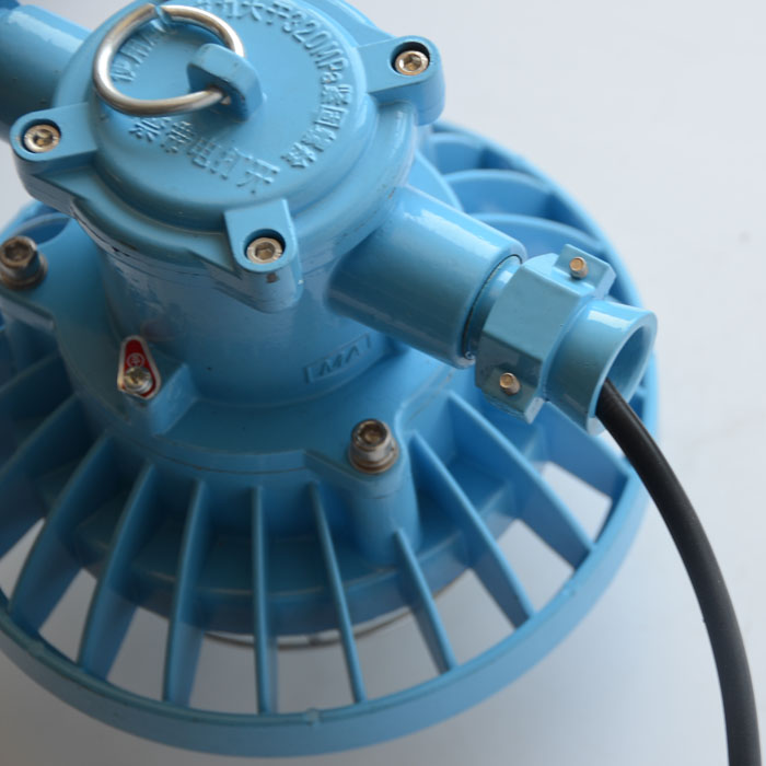 该灯具由灯具隔爆外壳、光源LED及配套电器组成。钢化玻璃透明件用金属件压紧在下壳上;各隔爆外壳之间采用平面隔爆方式连接,形成平面隔爆接合面。电缆引入装置采用直接引入,可适应多种线径的电缆。