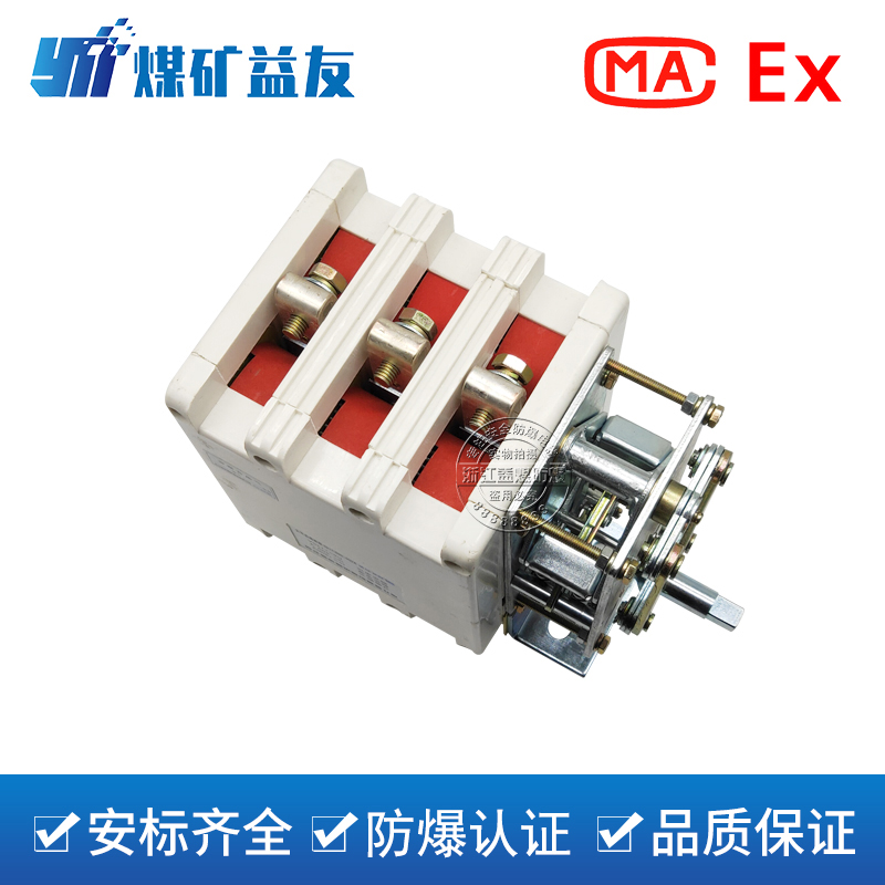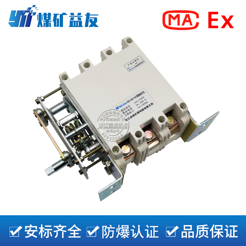 3、GK-400/1140隔离换向开关带有辅助触头,备有一常开一常闭两对辅助触电供外电路用。